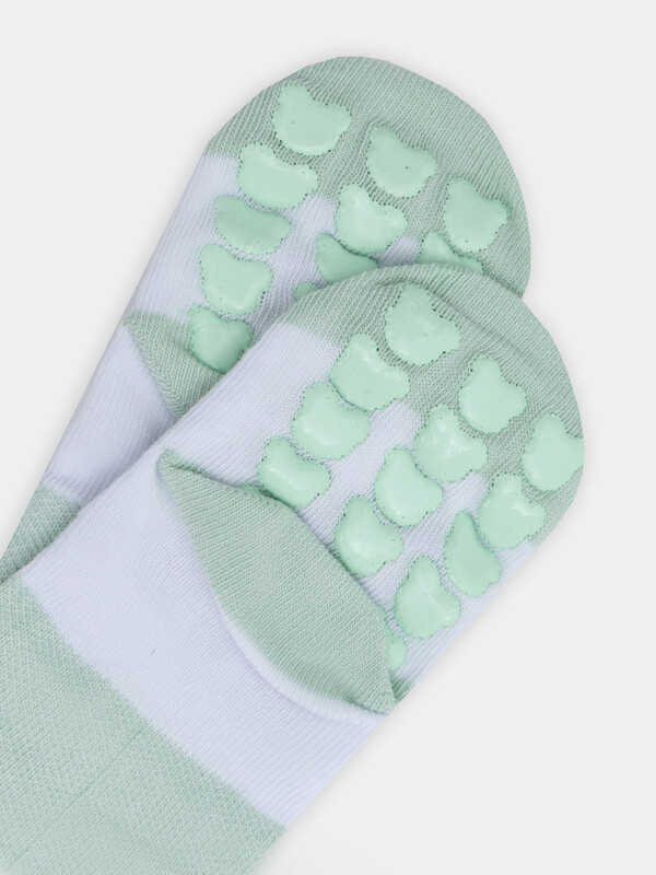 Детские классические носки с отворотом и очаровательным рисунком мишки — идеальный выбор для заботливых родителей. Модель сочетает стильный внешний вид и практичную функциональность. На подошве расположены силиконовые антискользящие точки, которые обеспечивают безопасность ребенка во время ходьбы, предотвращая скольжение на гладких поверхностях.