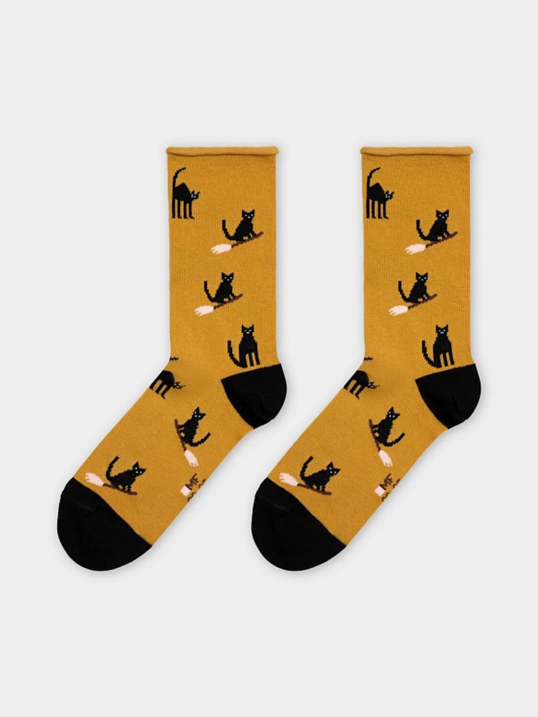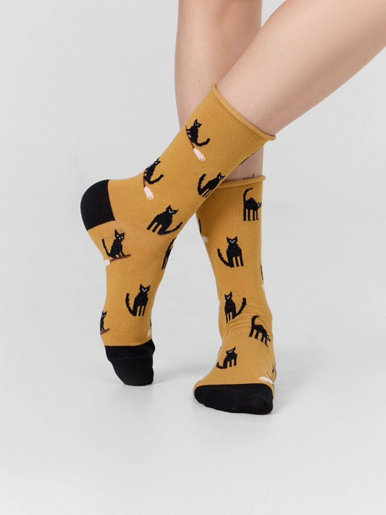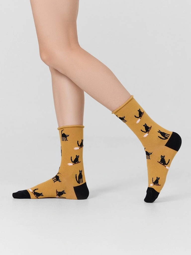 рис.3329 Женские классические носки с рисунком в виде котиков.