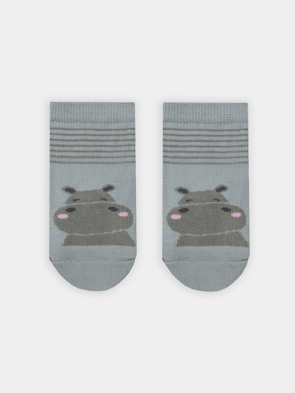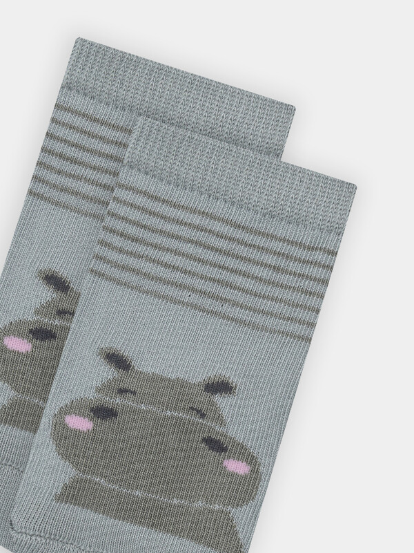 Зеленые детские носки с забавным рисунком бегемота — яркий аксессуар для повседневного гардероба. Модель выполнена из мягкого хлопка с добавлением полиамида и эластана, что обеспечивает комфорт, воздухообмен и сохранение формы.