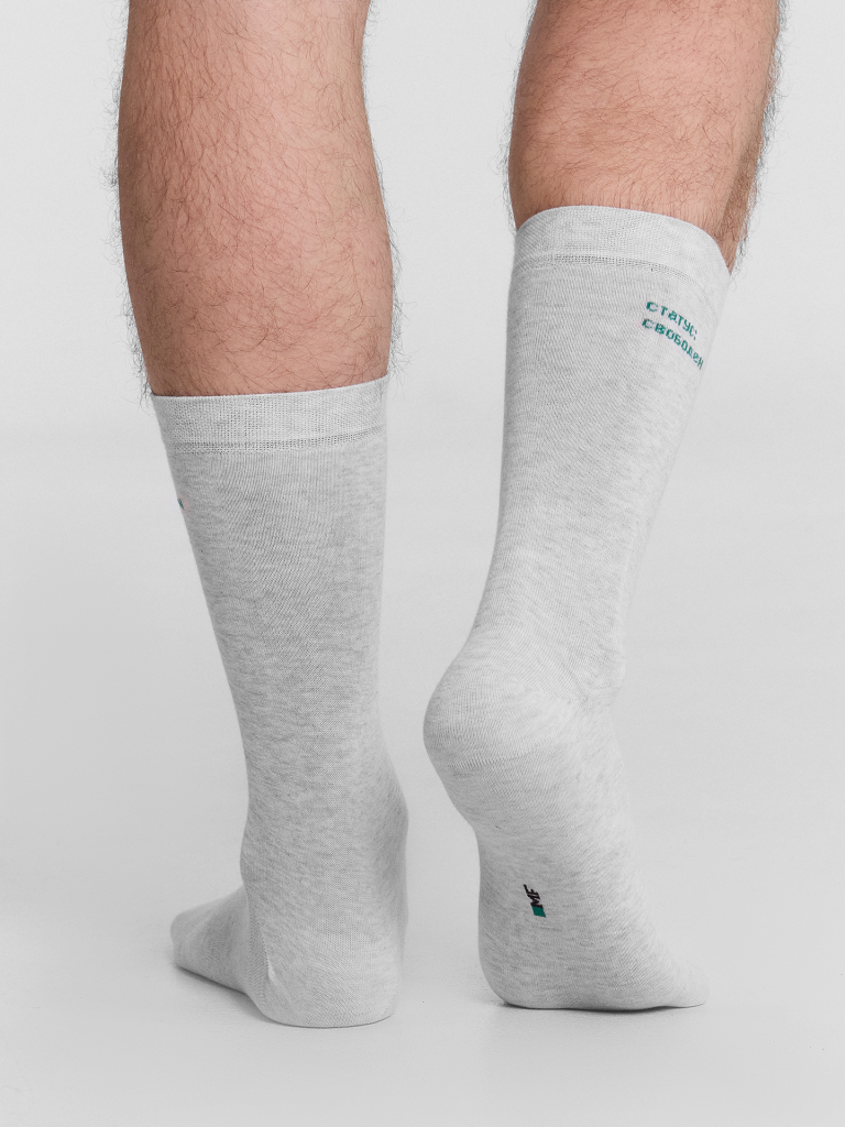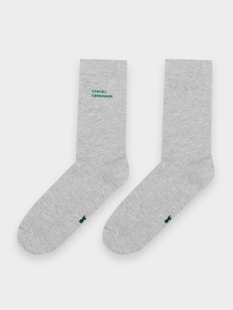 рис.3032 Мужской носок классический, высокий, с рисунком в виде надписи "Статус свободен".