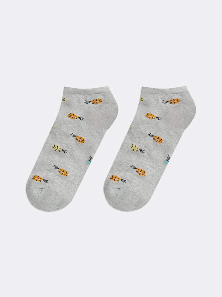 Носки мужские укороченные с рисунком в виде креветок. Короткие мужские носки изготовлены из гребенного хлопка — пряжи высочайшего качества, мягкой, тонкой, но прочной. Натуральные волокна отлично пропускают воздух, позволяя коже дышать, и впитывают влагу, дарят ощущение комфорта в течение всего дня. Благодаря небольшому количеству эластана в составе, носки хорошо облегают стопу и сохраняют форму даже после множества стирок. Мягкая эластичная резинка надежно удерживает носки на ноге, но не давит. Пятка и мысок дополнительно усилены, что гарантирует защиту от протирания и повышенную износостойкость — мужские носки с принтом прослужат долго. Мужские носки от Mark Formelle помогут вам в создании стильных и гармоничных образов. Лучший выбор на каждый день. Рекомендуем!