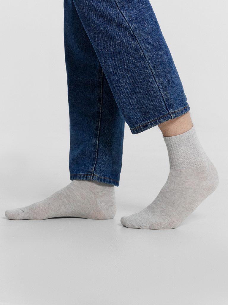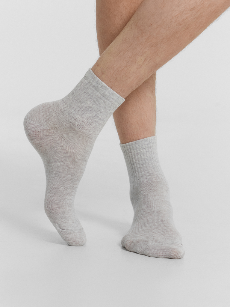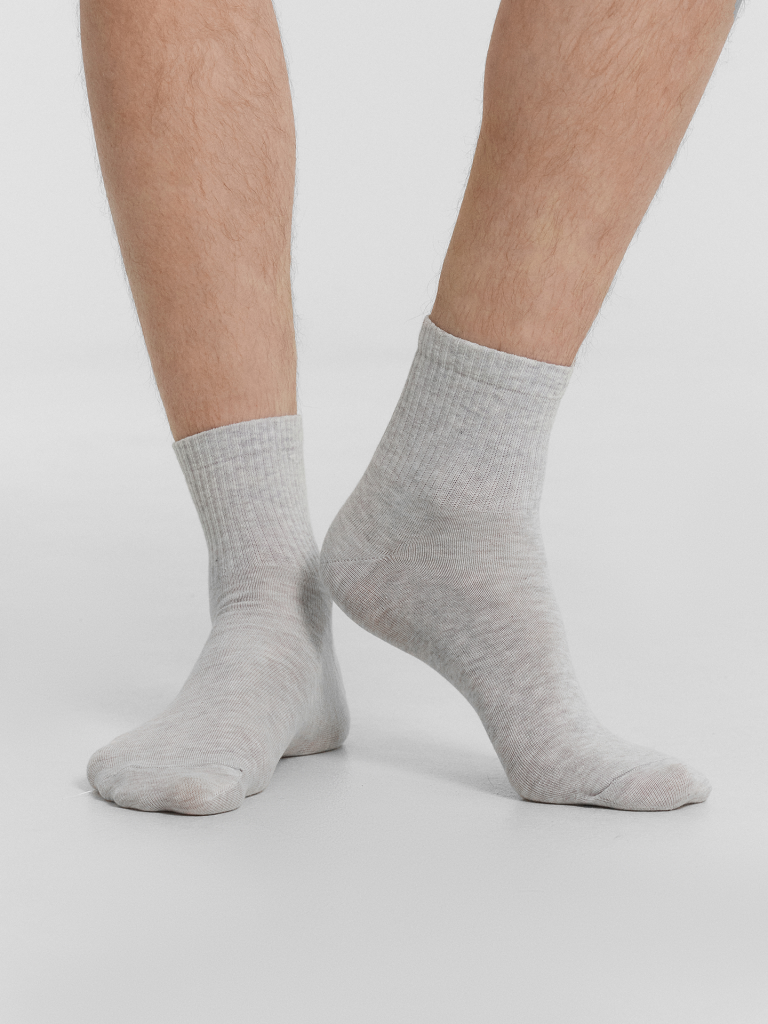 Рис.3084 Мужской носок однотонный средней длины и резинкой на поголенке.