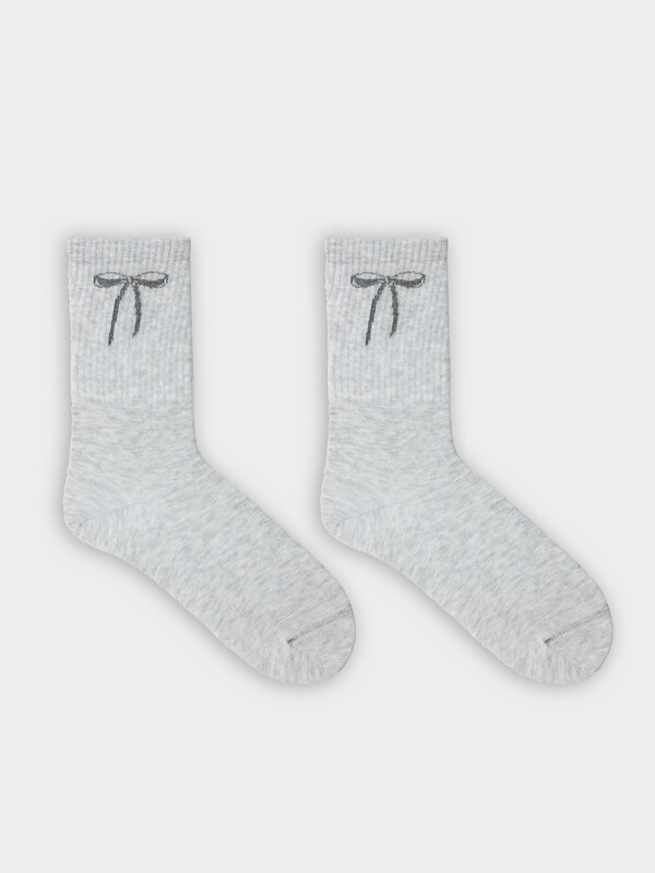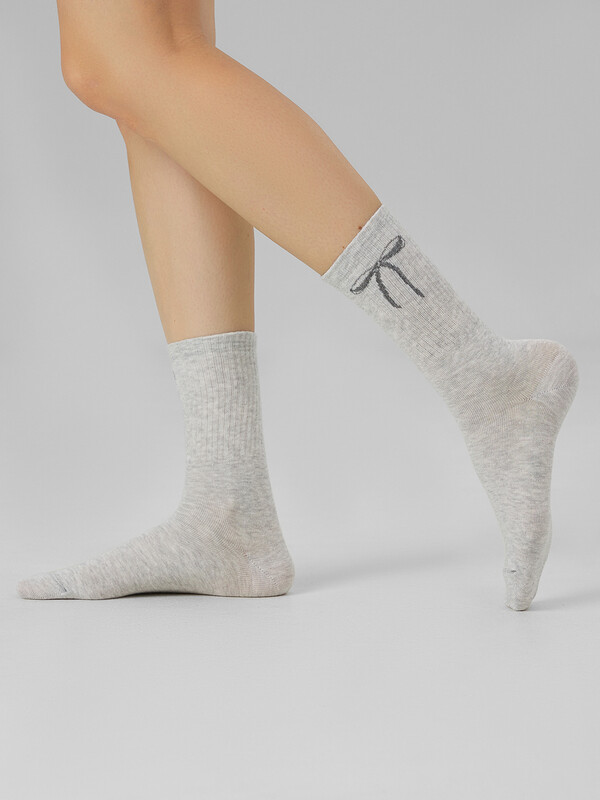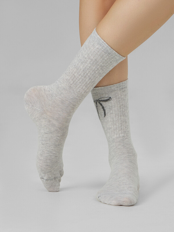рис.3139 Женский носок с высоким плотным бортом и рисунком в виде бантика с люрексом на участке резинки.