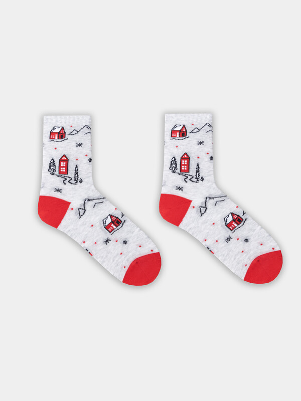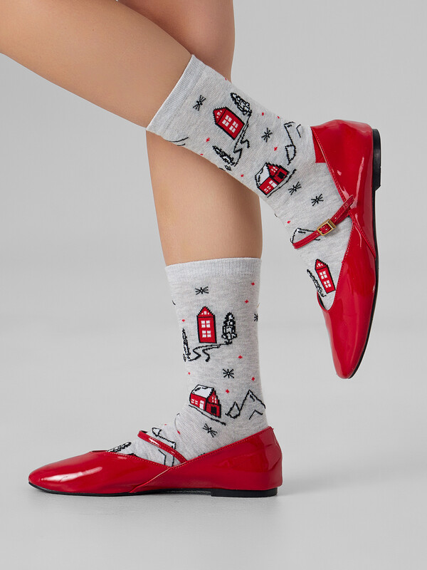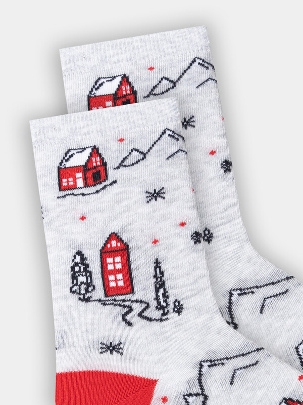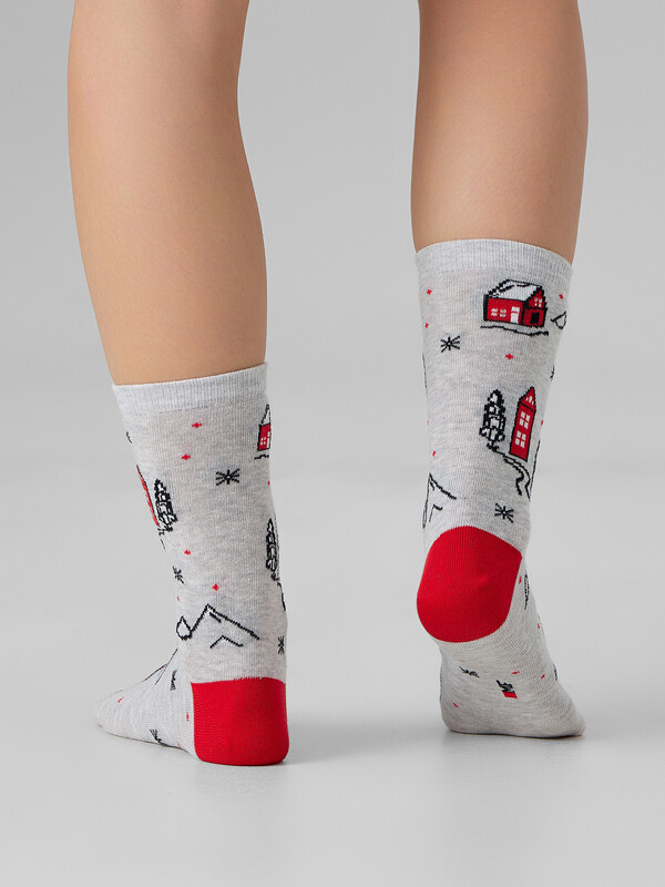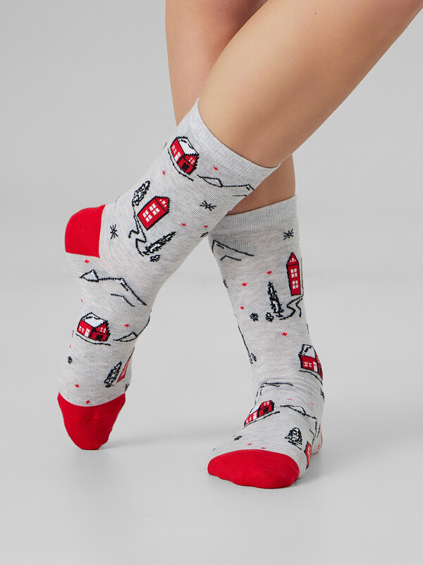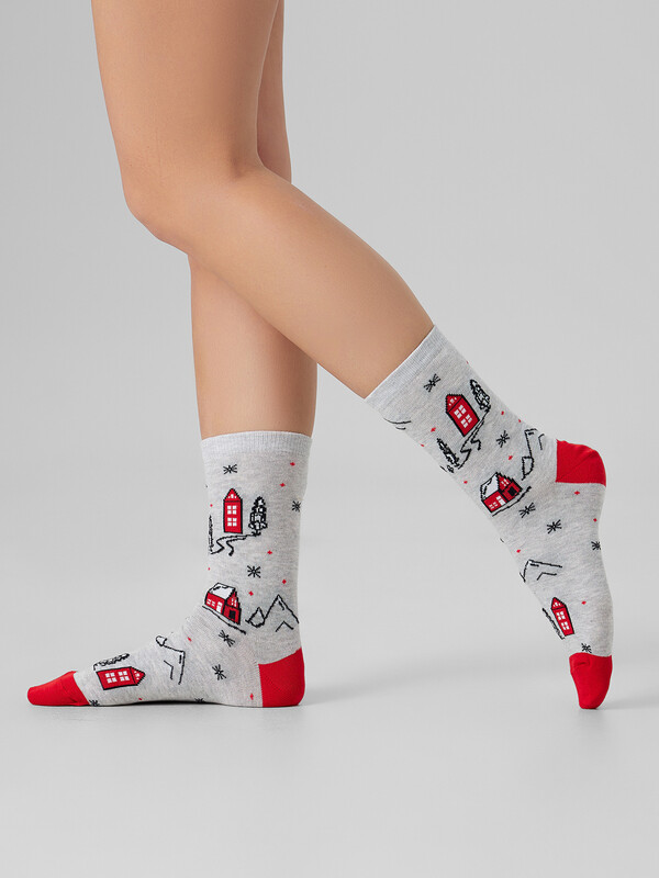 рис.3433 Женские классические носки с рисунком в виде домиков и елок.