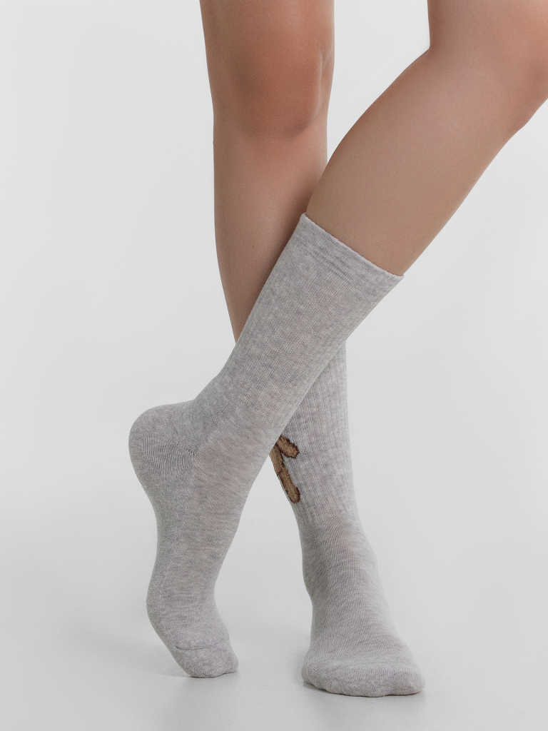 рис.2533 Женские носки с высоким плотным бортом, плюшевым следом и рисунком в виде медвежат.