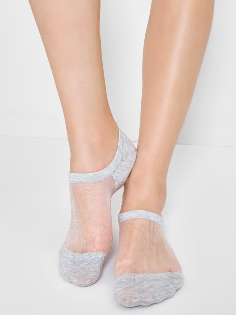 Женские суперкороткие носки с хлопковой пяткой и мыском и прозрачным полиамидом на следу.