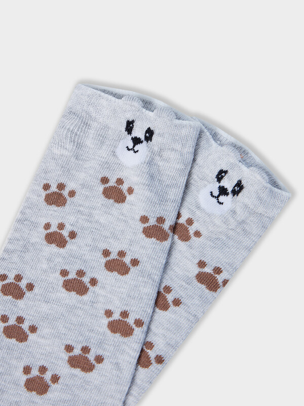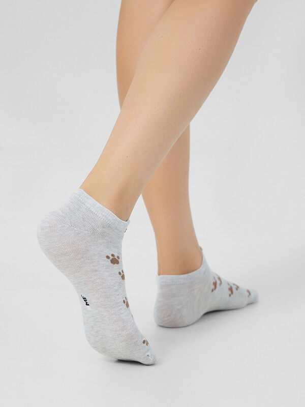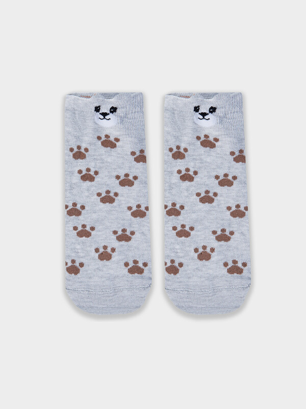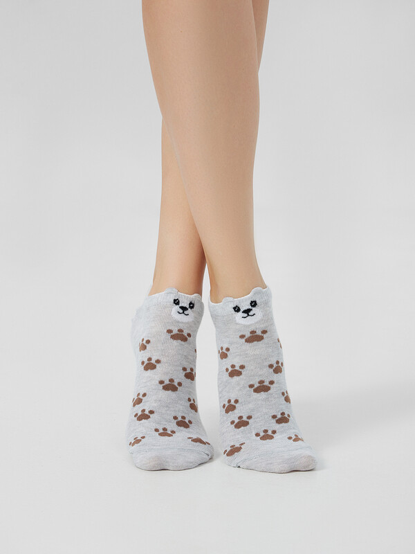 рис.3179 Детский укороченный носок с рисунком в виде лапок и мишек с элементом пикота.