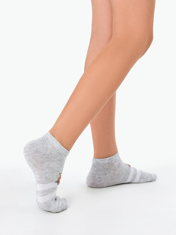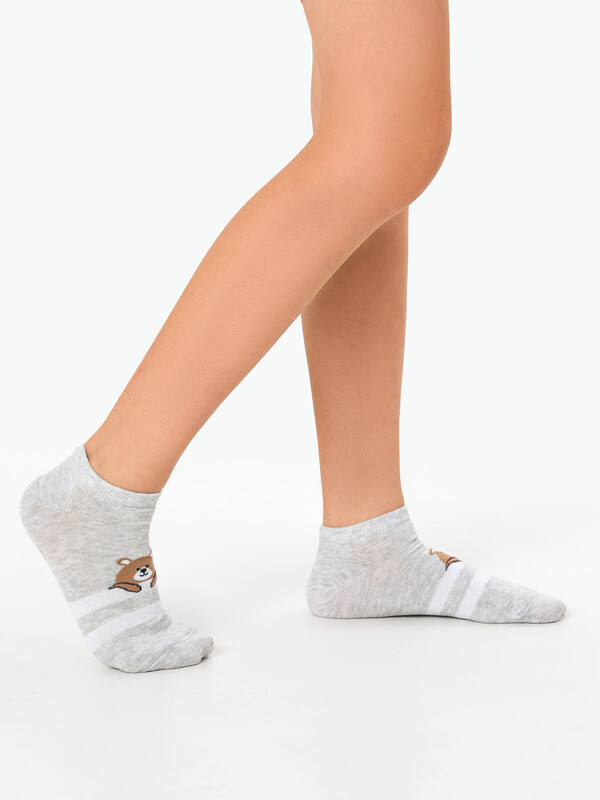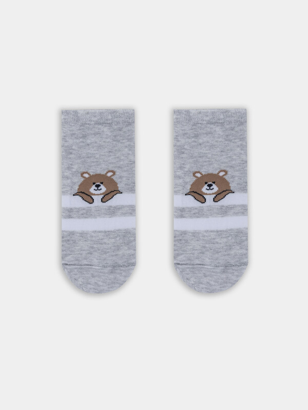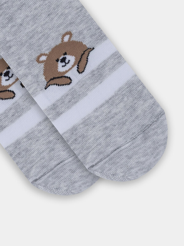 рис.3180 Детский укороченный носок с рисунком в виде полосок и мишки.