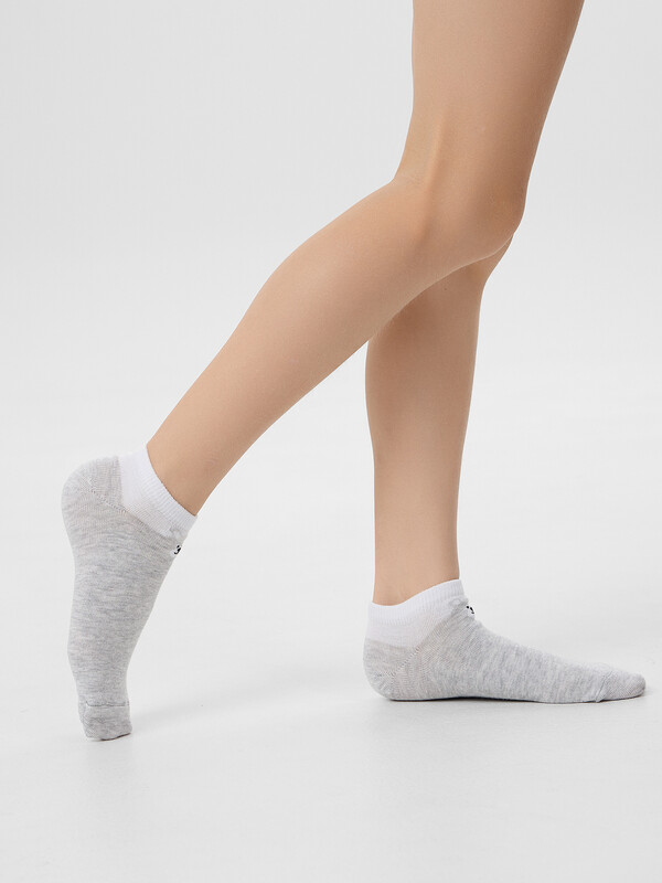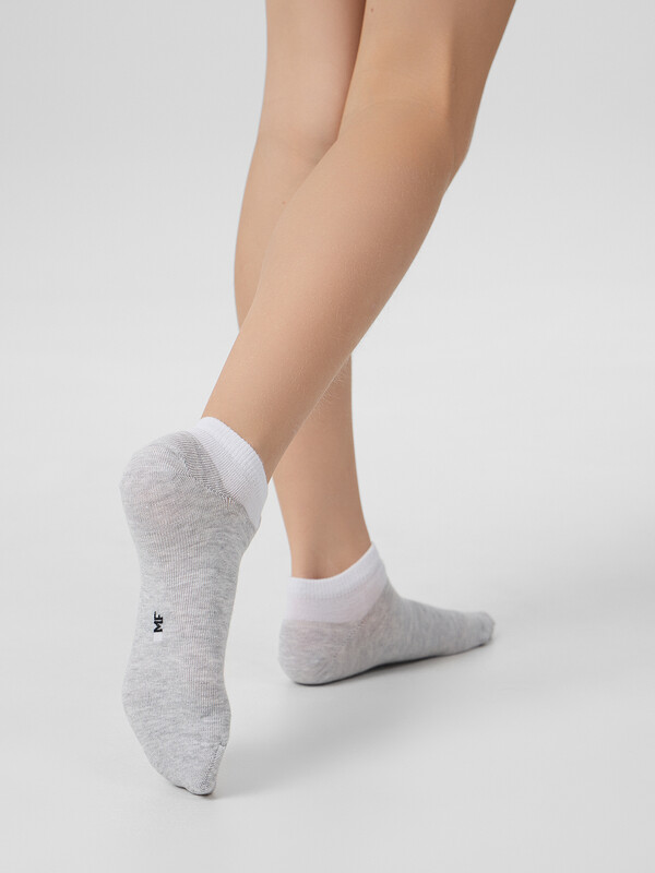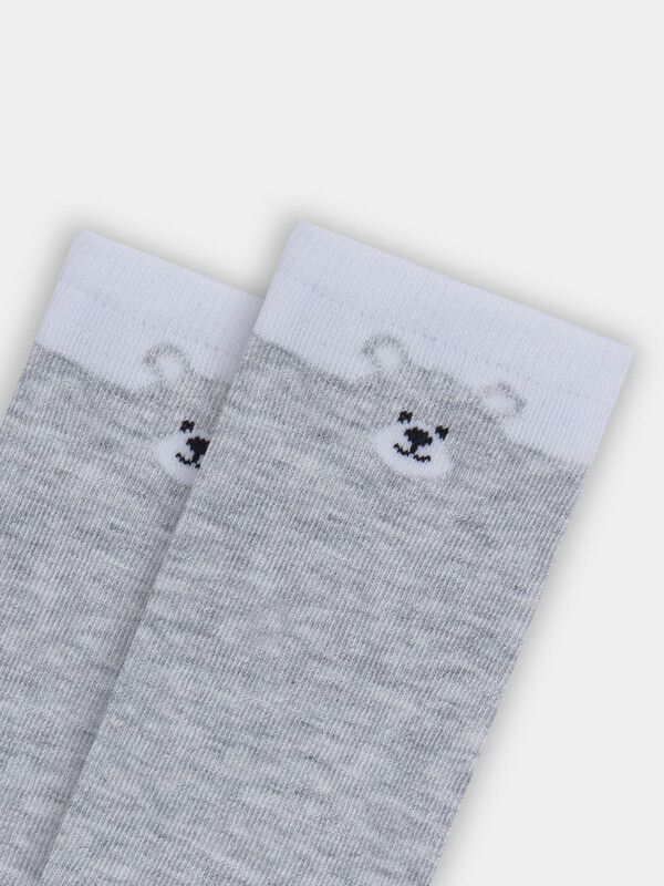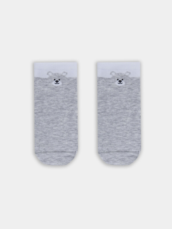 рис.3181 Детский укороченный носок с рисунком в виде двух цветов основы и мишки.