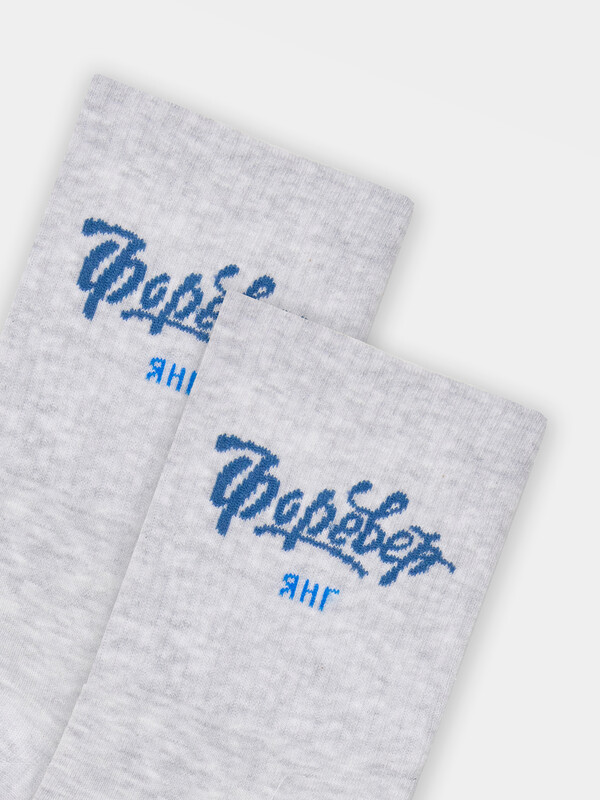 рис.3285 Носок высокий с плотным бортом и рисунком в виде надписи "ФОРЕВЕР янг".