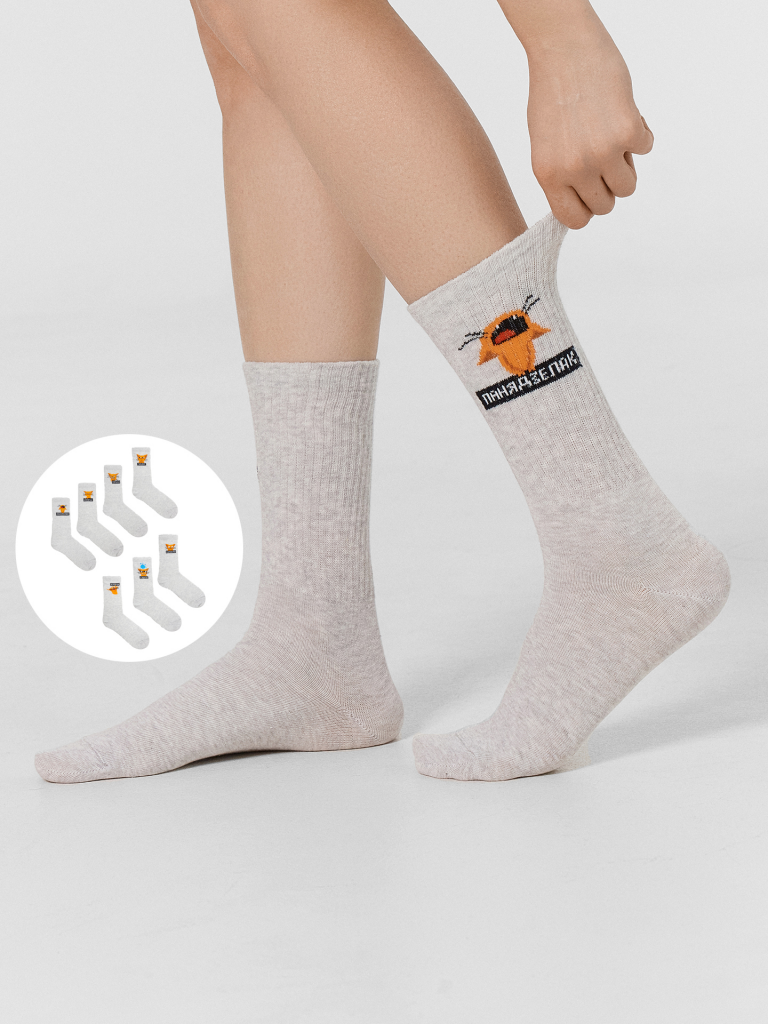 рис.2663 Мультипак из 7-х пар женских носков с высоким плотным бортом и рисунком в виде котика и надписью дней недели. составляющие: 217G-2664, 217G-2665, 217G-2666, 217G-2667, 217G-2668, 217G-2669, 217G-2670