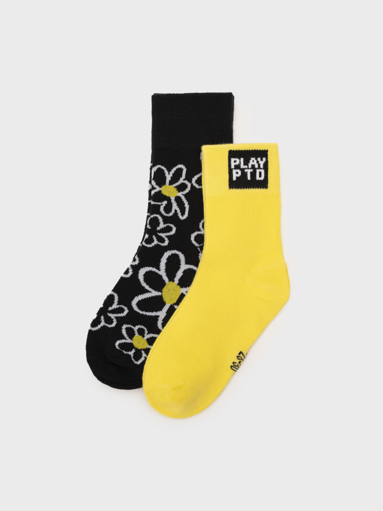 Носки трикотажные для девочек, 2 пары в комплекте черный,жёлтый