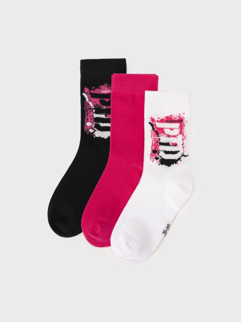 Носки трикотажные для девочек, 3 пары в комплекте черный,фуксия,белый