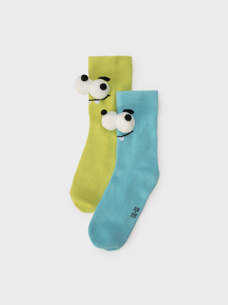 Набор детских носков для мальчика. Носки из высококачественного хлопка с добавлением нейлона и эластана. Комфортная модель с усиленным мыском и пяткой. Мягкая широкая резинка хорошо фиксируется по ноге ребенка. 2 пары в сете. Декор - объемные глаза.