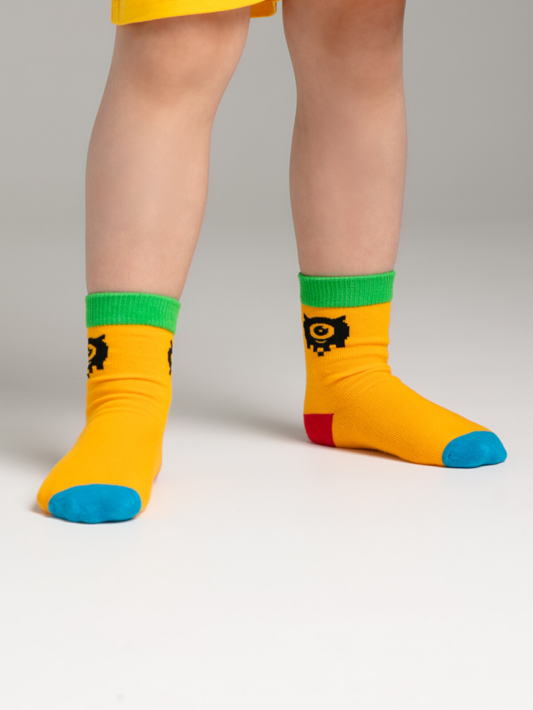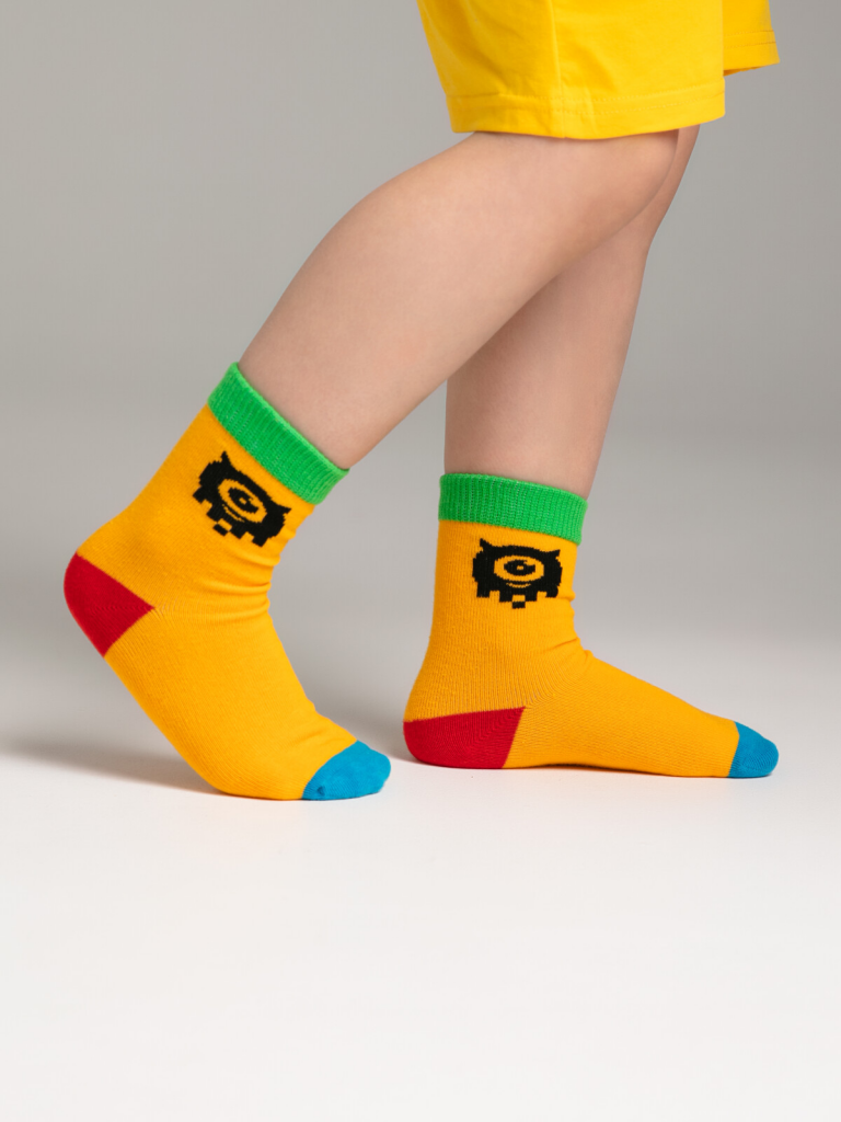 Носки из высококачественного хлопка с добавлением нейлона и эластана. 2 пары в сете. Комфортная модель с усиленным мыском и пяткой. Мягкая широкая резинка хорошо фиксируется по ноге ребенка.