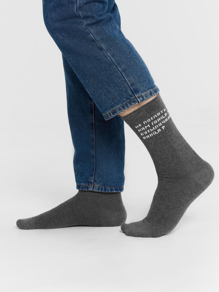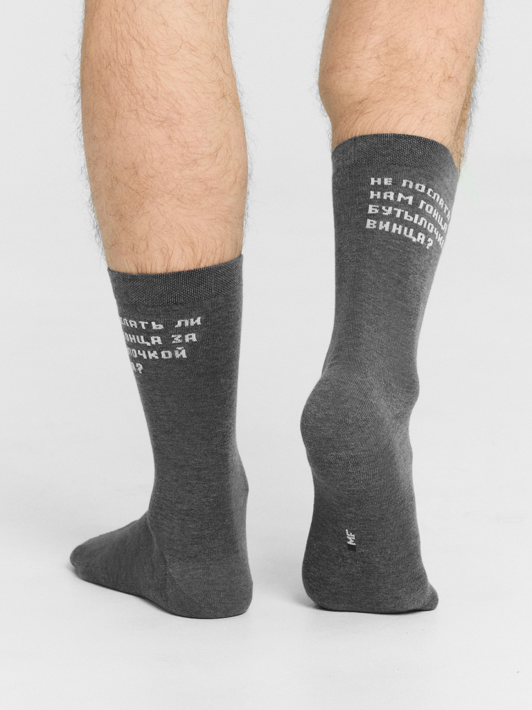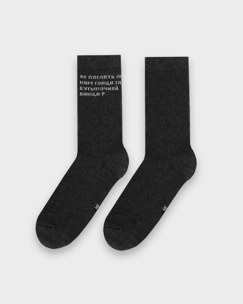 рис.3026 Мужской носок классический, высокий, с рисунком в виде надписи "Не послать ли.....".