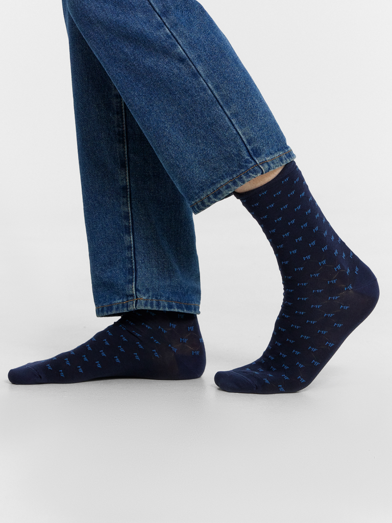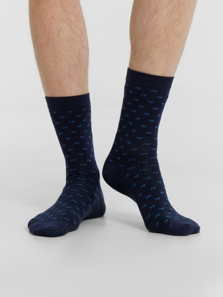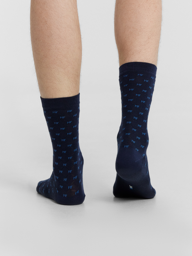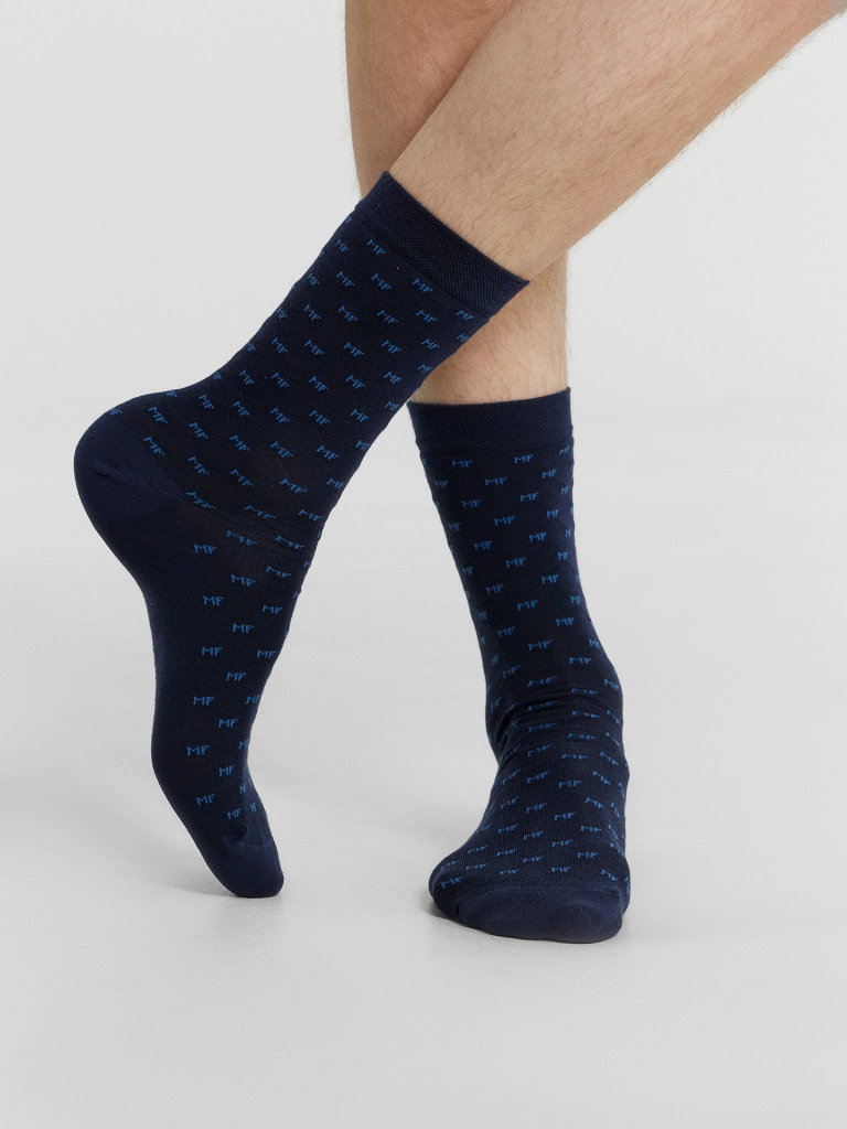 рис.3047 Мужской носок классический, высокий, с рисунком в виде логотипа MF.