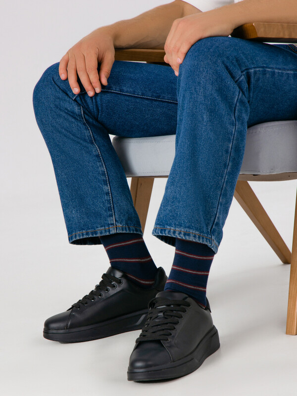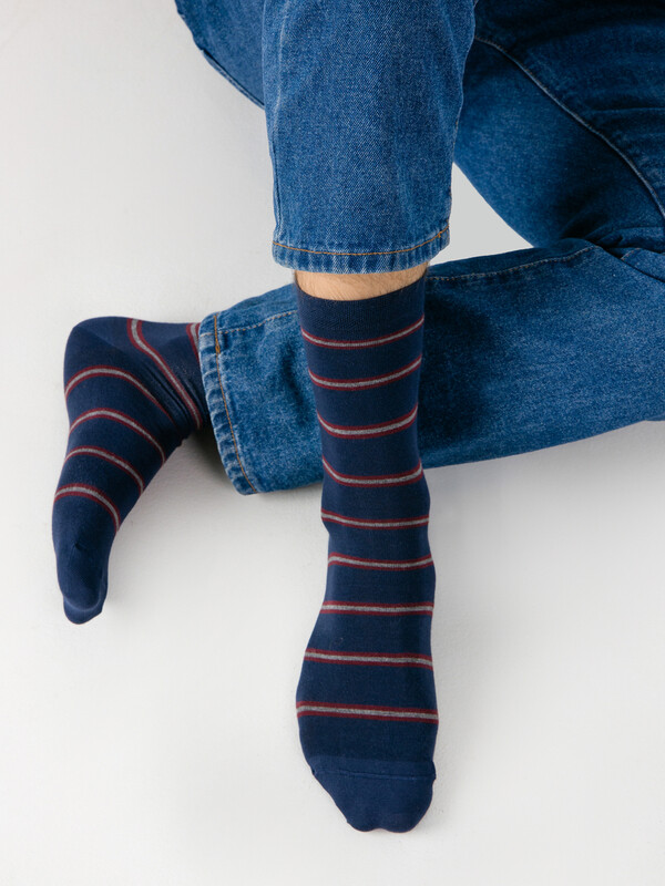 рис.3320 Мужской носок классический, высокий, с рисунком в виде поперечной полоски.