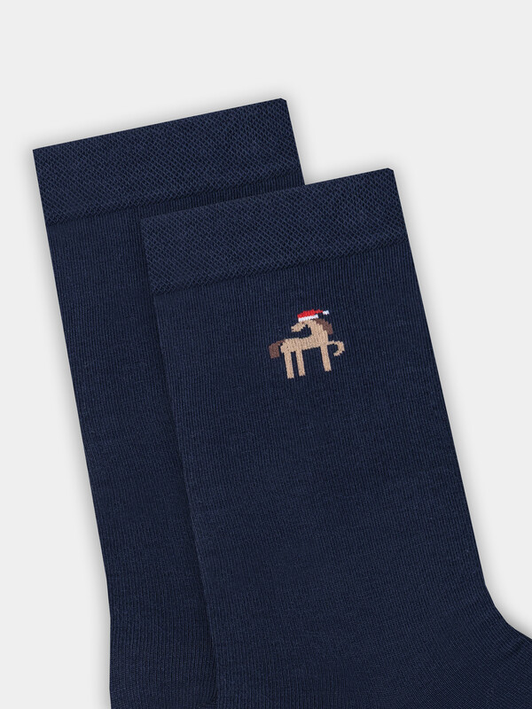 рис.3423 Носки мужские классические, с рисунком в виде маленькой лошадки.