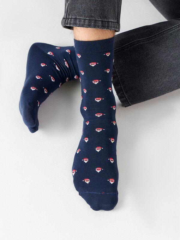 рис.3424 Мужской носок классический, с рисунком в виде маленьких сант.
