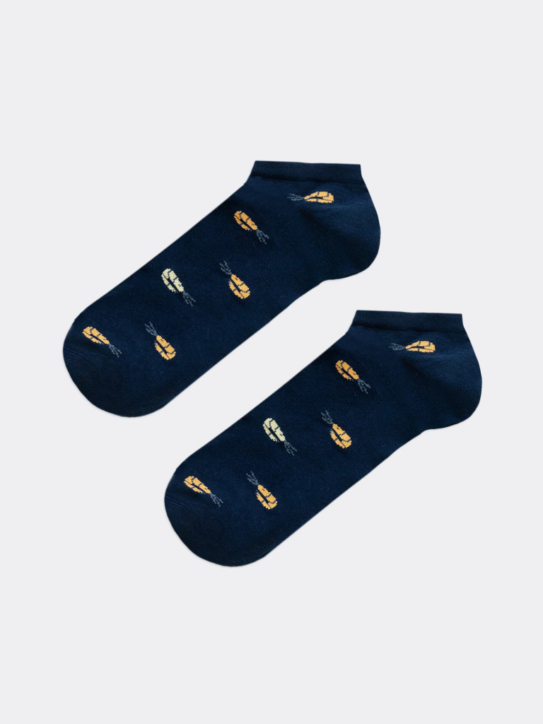Носки мужские укороченные с рисунком в виде креветок. Короткие мужские носки изготовлены из гребенного хлопка — пряжи высочайшего качества, мягкой, тонкой, но прочной. Натуральные волокна отлично пропускают воздух, позволяя коже дышать, и впитывают влагу, дарят ощущение комфорта в течение всего дня. Благодаря небольшому количеству эластана в составе, носки хорошо облегают стопу и сохраняют форму даже после множества стирок. Мягкая эластичная резинка надежно удерживает носки на ноге, но не давит. Пятка и мысок дополнительно усилены, что гарантирует защиту от протирания и повышенную износостойкость — мужские носки с принтом прослужат долго. Мужские носки от Mark Formelle помогут вам в создании стильных и гармоничных образов. Лучший выбор на каждый день. Рекомендуем!
