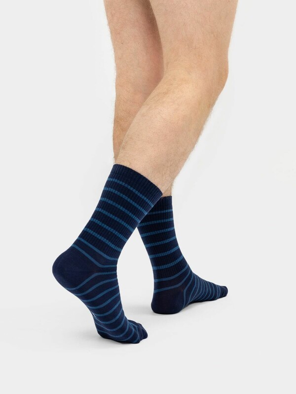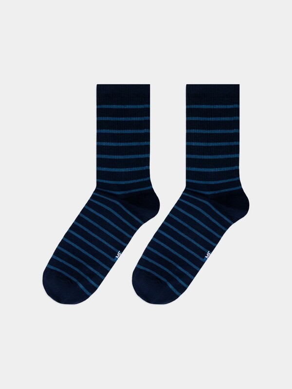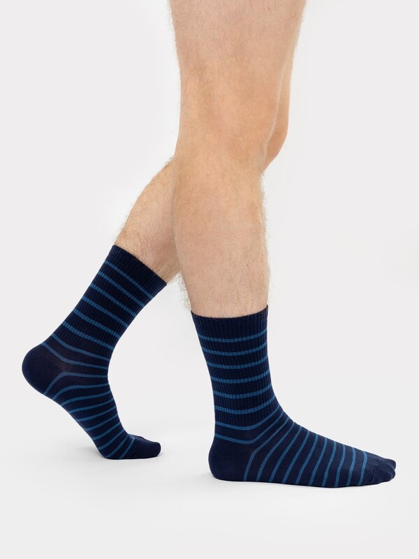 Носки мужские классические высокие с высоким плотным бортом и рисунком в виде полосок - нескучный вариант для ежедневной носки. Длинные мужские носки изготовлены из гребенного хлопка - пряжи высочайшего качества, мягкой, тонкой, но прочной. Натуральные волокна отлично пропускают воздух, позволяя коже дышать, и впитывают влагу, дарят ощущение комфорта в течение всего дня. Благодаря небольшому количеству эластана в составе, длинные носки хорошо облегают стопу и сохраняют форму даже после множества стирок. Мягкая эластичная резинка надежно удерживает носки на ноге, но не давит. Рекомендуем!