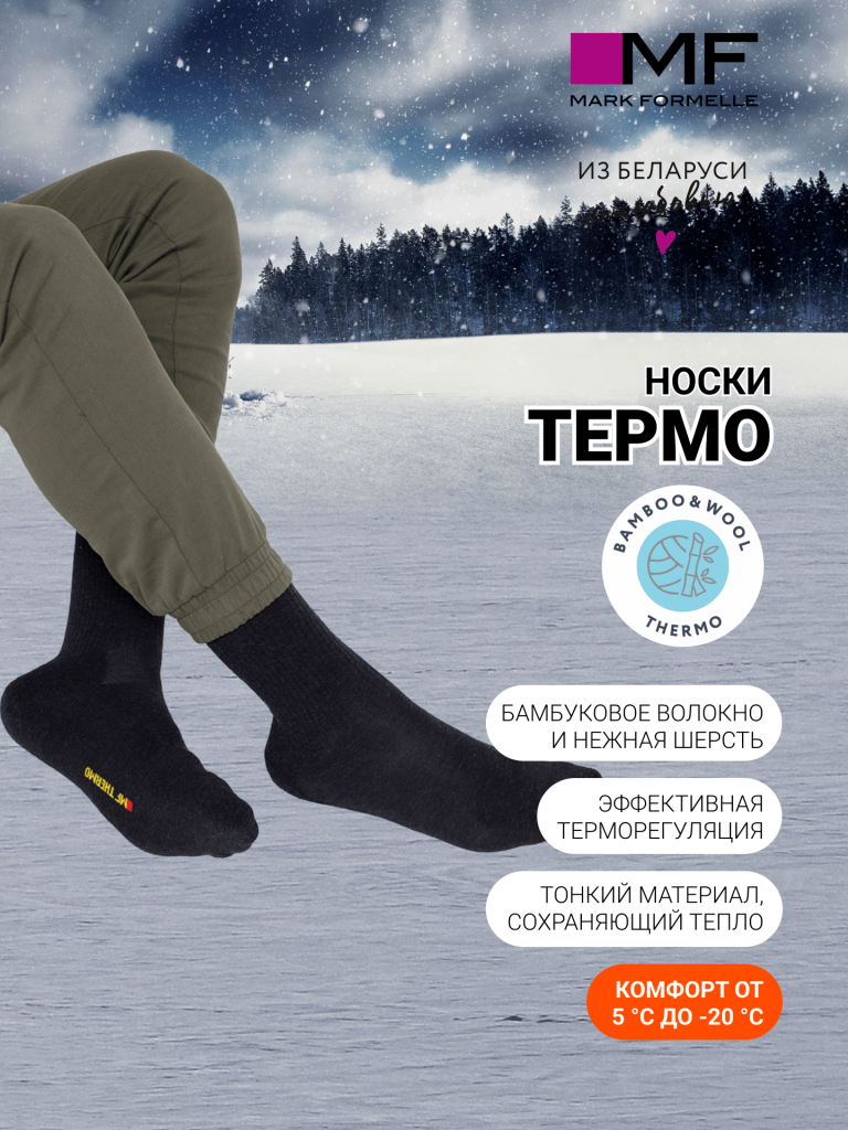 Мужской носок с махровой стопой и высоким плотным бортом из термосырья.