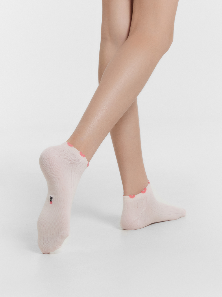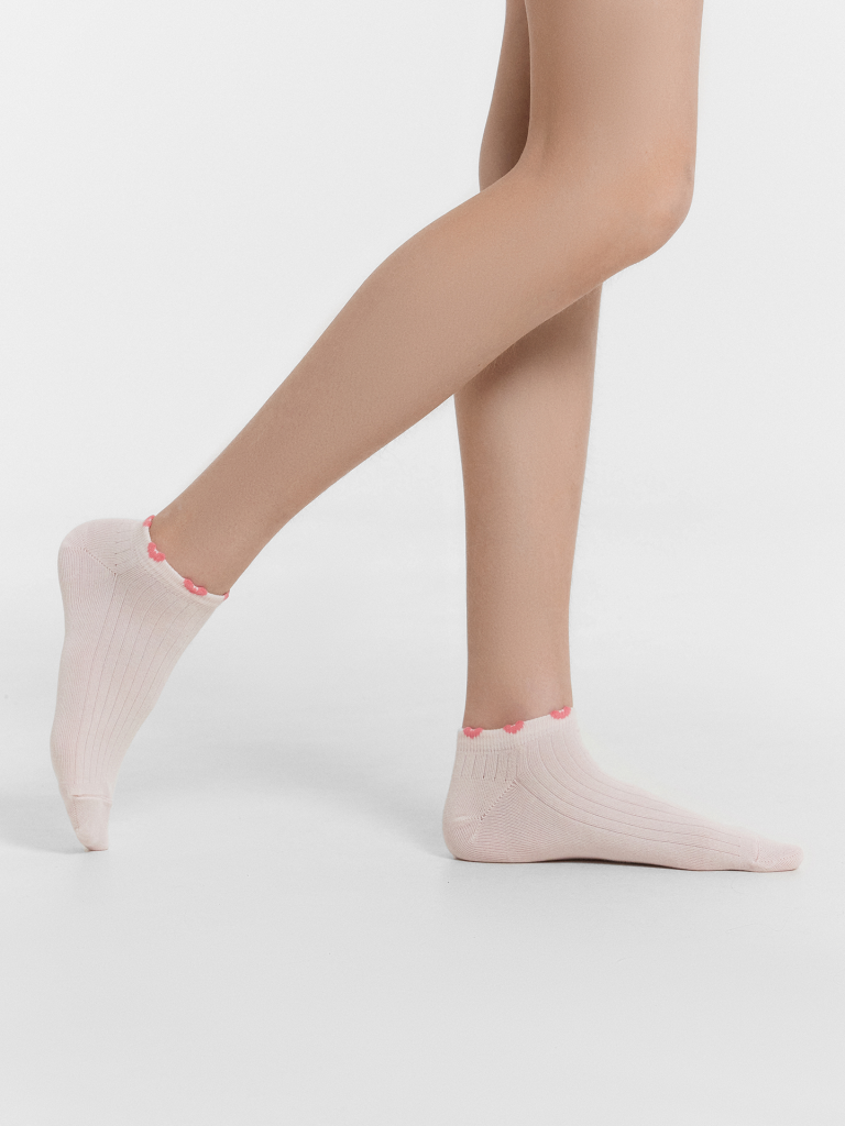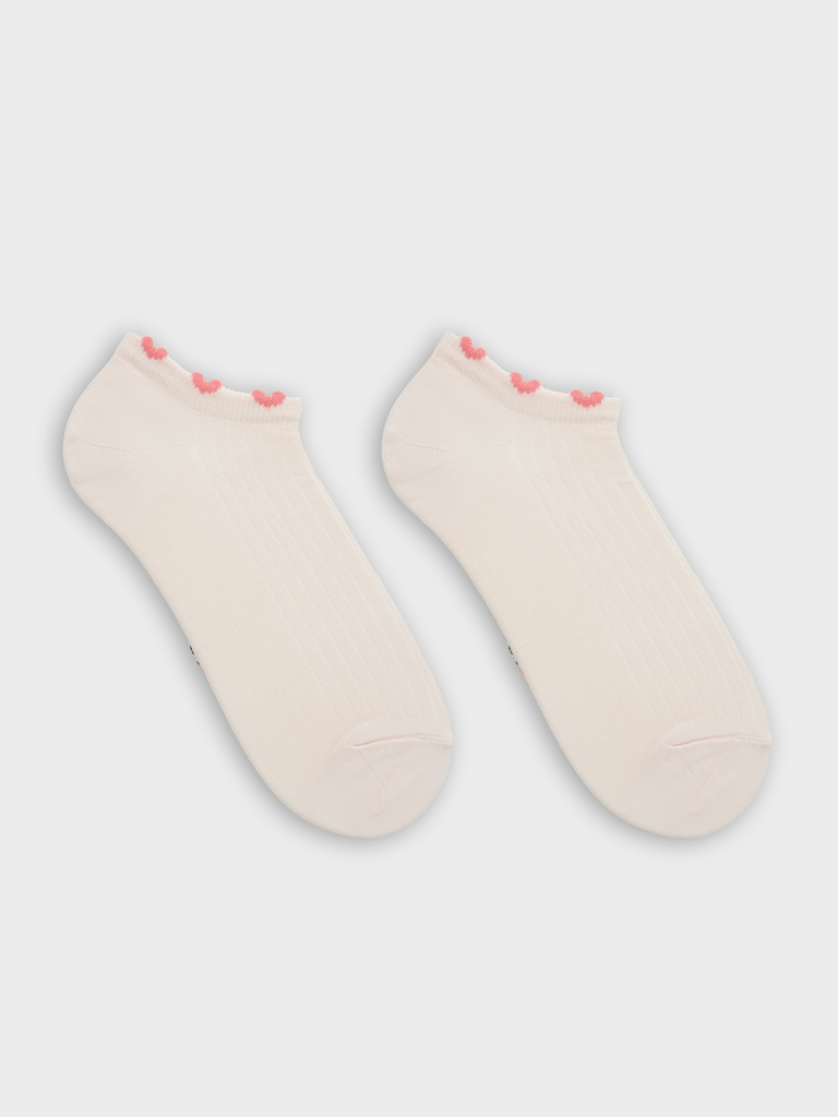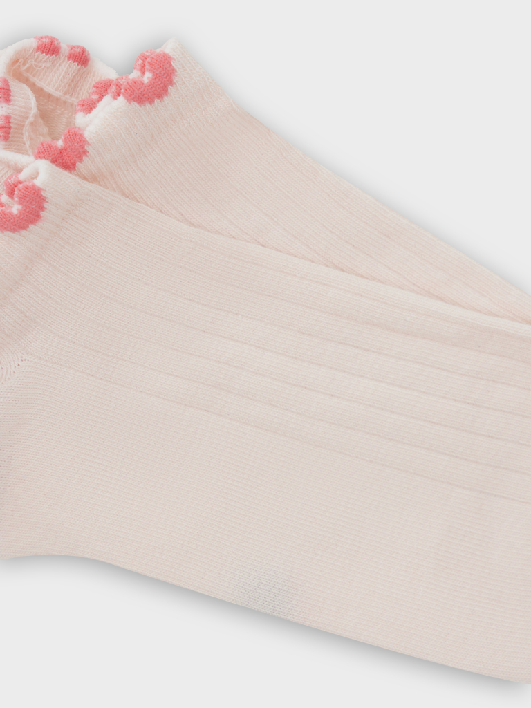 рис.3191 Детские укороченные носки выполненный перекидным переплетением (лапша), с пикотом в виде сердечек на бортике.