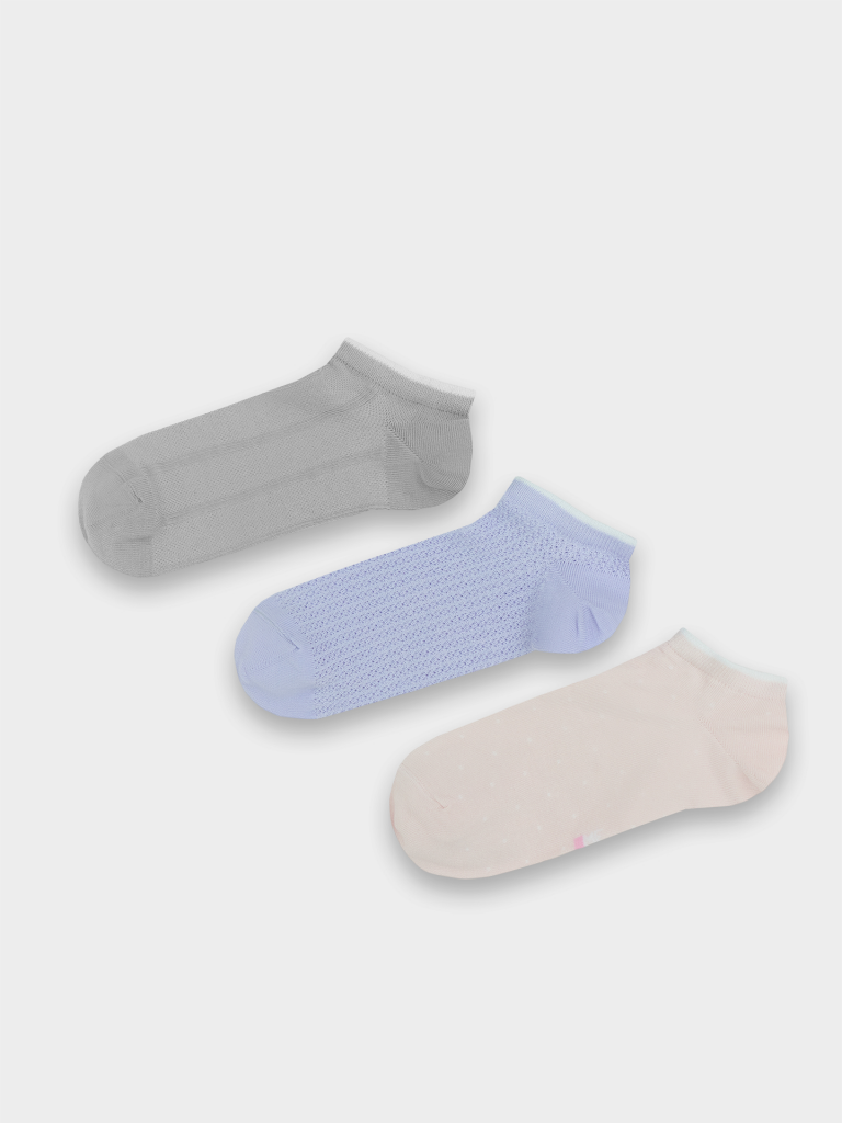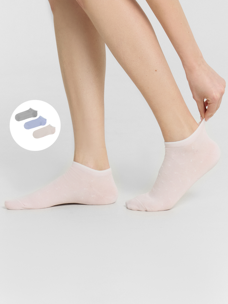 рис.2003 Мультипак из трех пар женских носков укороченных с рисунком в виде горошка, ажура и сетки.