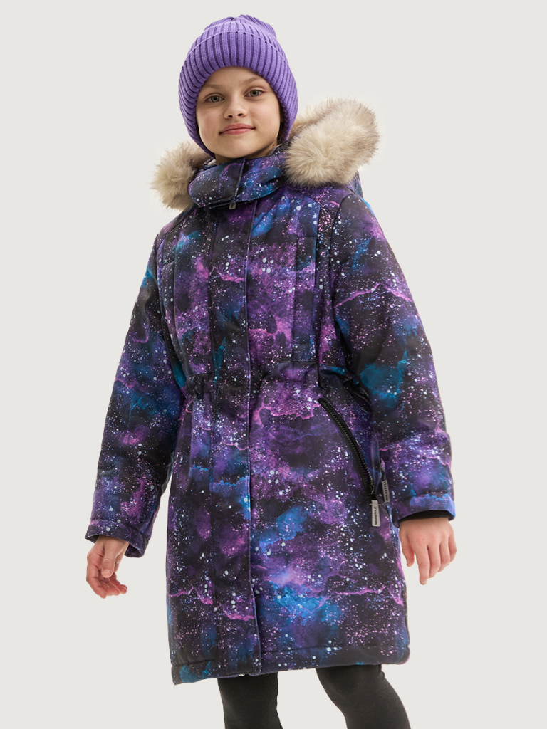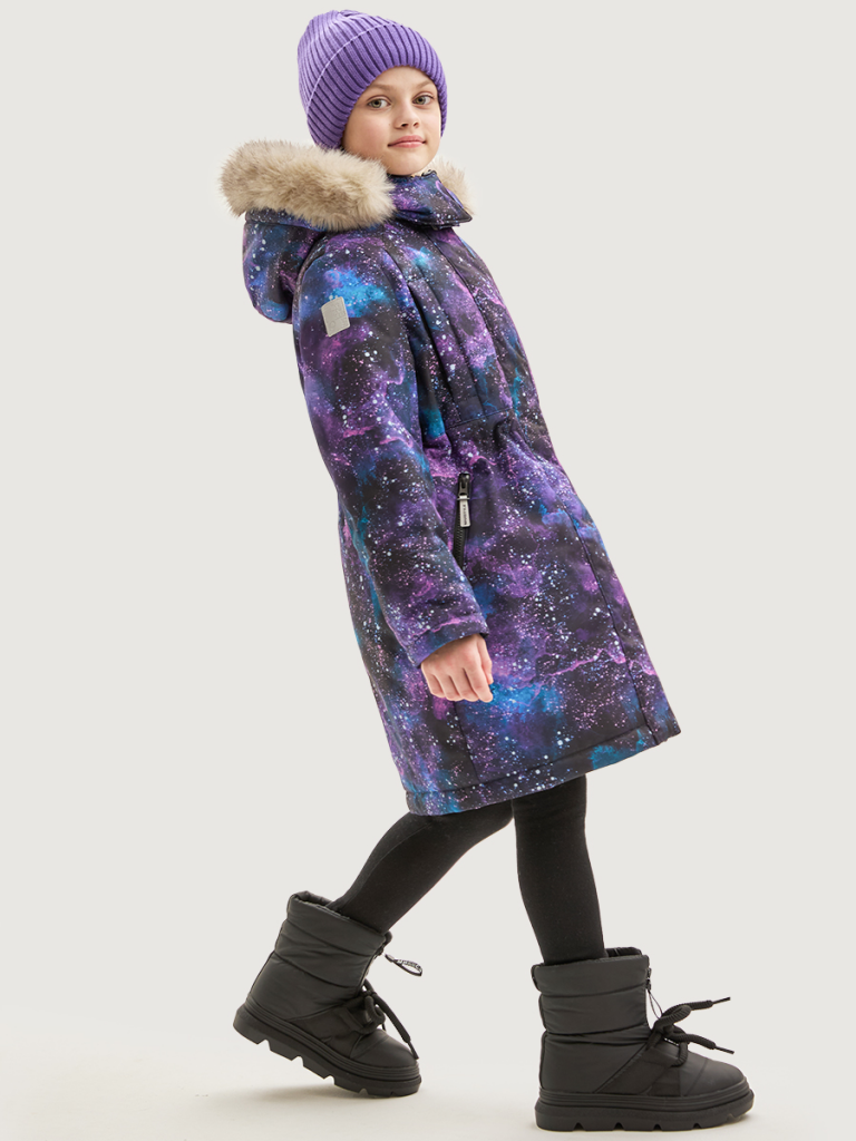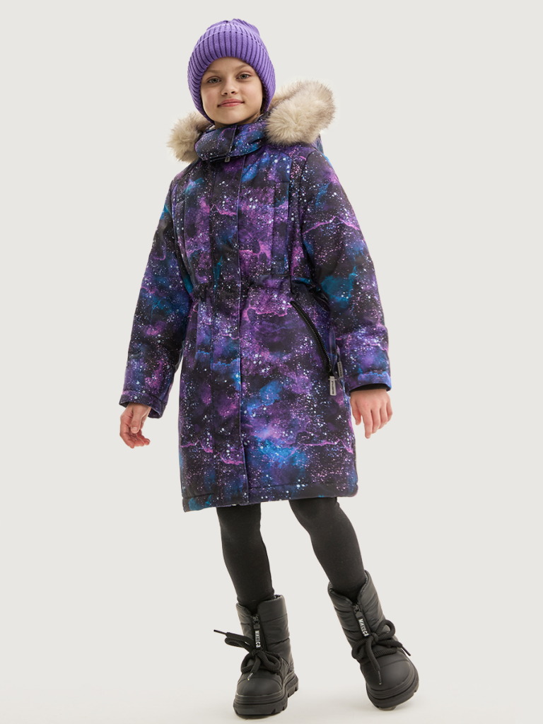 Пальто ВСЕЛЕННАЯ из мембранной ткани 5000/5000 с водо- грязеотталкивающей технологией TEFLON.