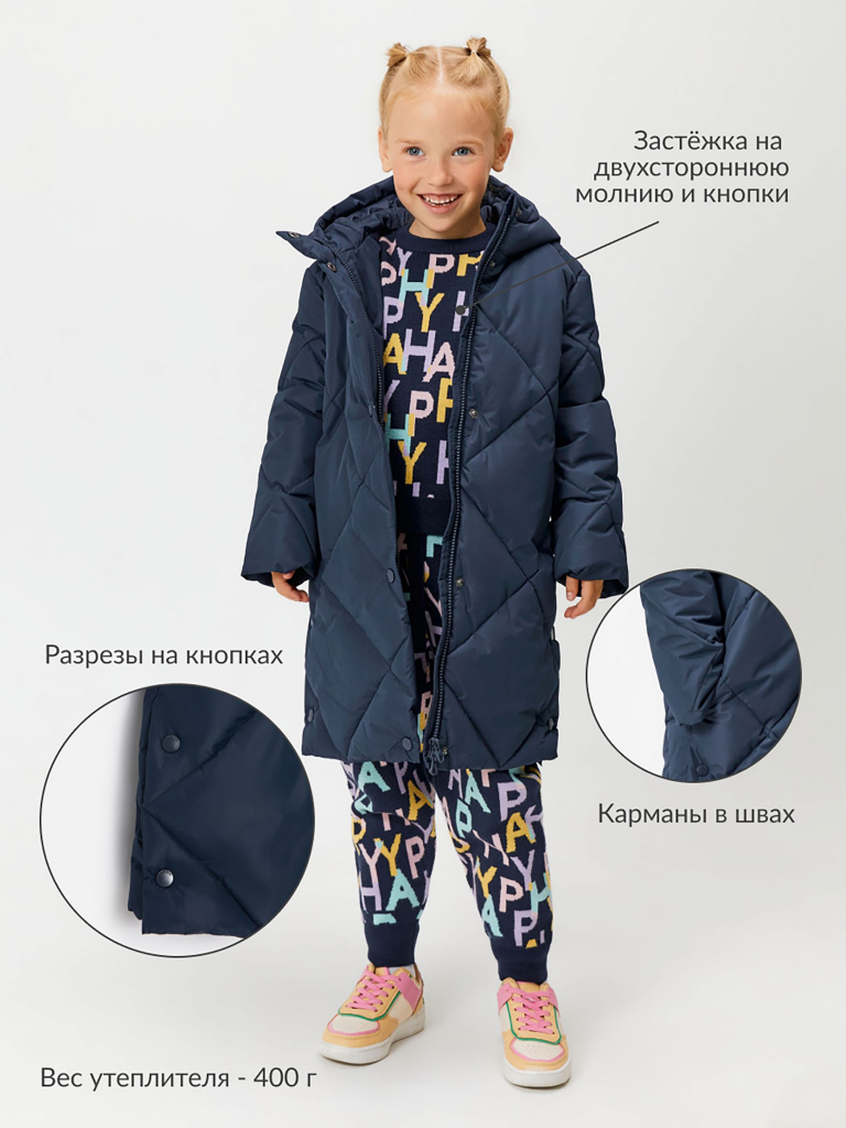 Пальто детское для девочек Mariette темно-синий