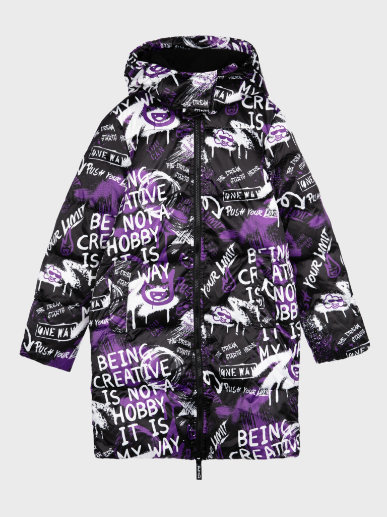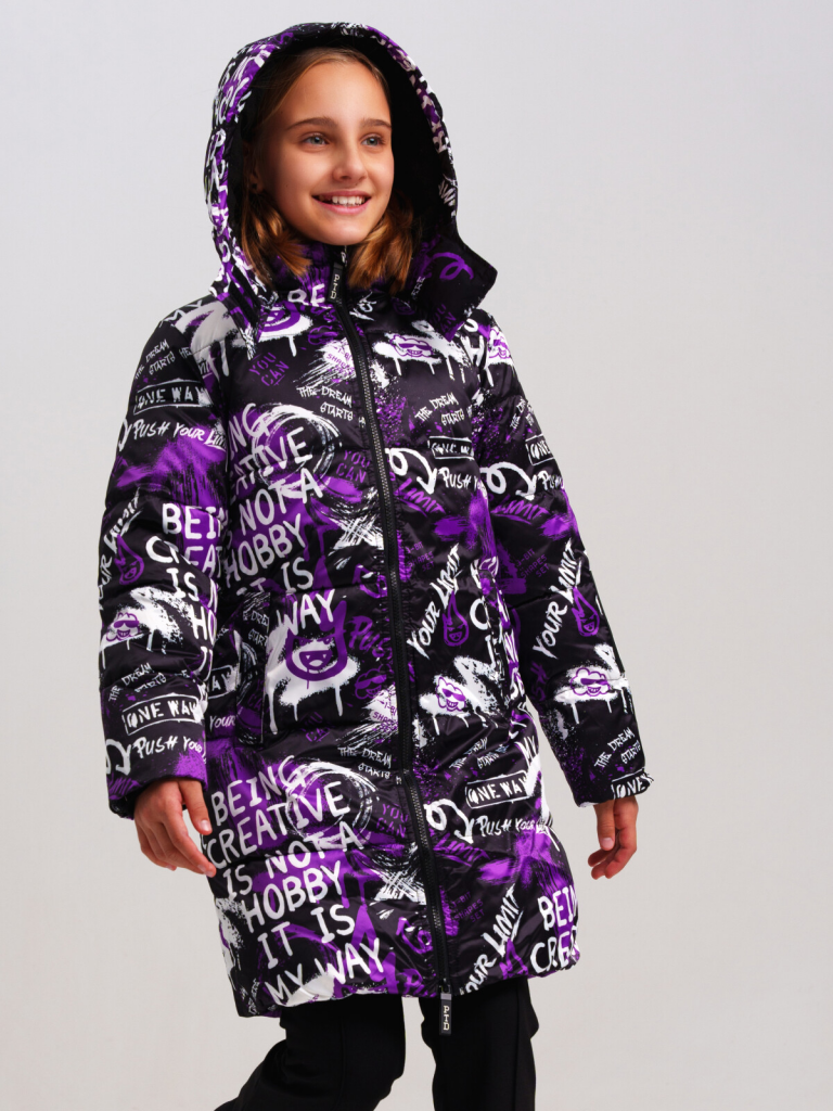 > Пальто текстильное с полиуретановым покрытием для девочек черный,белый,фиолетовый