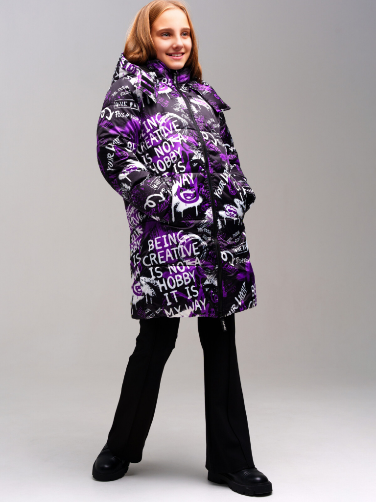 Утепленное зимнее пальто для девочки подростка. Температурный режим до -25°С*. Линия Nord - высокая степень теплозащиты для сильных холодов. Модная подростковая куртка с ветрозащитным и водоотталкивающим покрытием. Теплая и мягкая флисовая подкладка. Внутренняя ветрозащитная планка c дополнительной лентой для легкого застегивания молнии. Молния с двойным ходом. Эластичные трикотажные манжеты. Два боковых кармана на магнитных кнопках. Внутренний карман. Текстильный клапан для защиты подбородка при застегивании молнии. Несъемный капюшон с возможностью регулировки стопперами. Светоотражающие элементы. Пальто (зима) будет актуально для повседневных прогулок в холодное время года.*Пожалуйста, обратите внимание, что указанный температурный режим является приблизительным и зависит от многих факторов, таких как возраст, физическое состояние, уровень активности ребенка и количество слоев одежды. Время, проведенное на открытом воздухе, и погодные условия, такие как холодный ветер, могут повлиять на тепловые характеристики изделия. Убедитесь, что защищены от холода голова, руки и ноги. Модель из капсульной коллекции DIGITAL TRANSFORM (ДИДЖИТАЛ ТРАНСФОРМ). Соберите полный образ в едином стиле!
