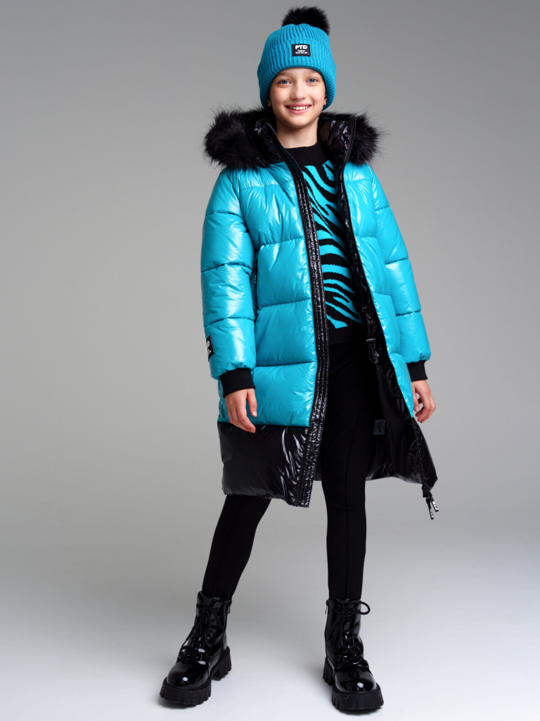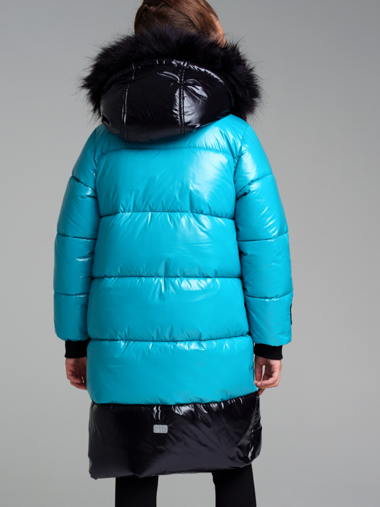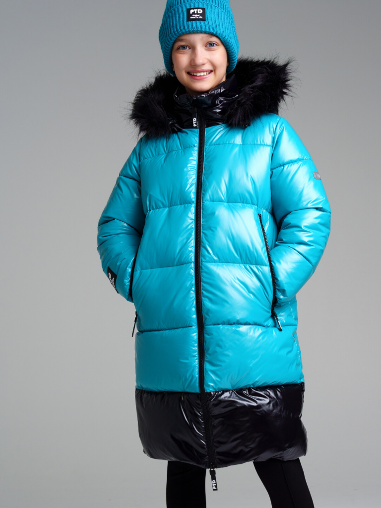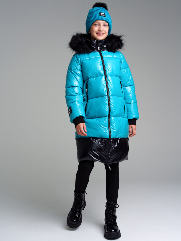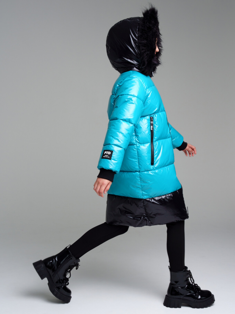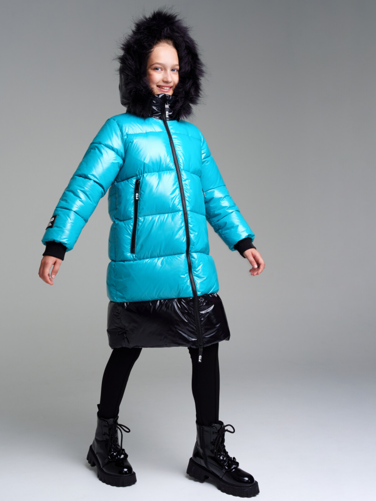 > Пальто текстильное с полиуретановым покрытием для девочек черный,голубой