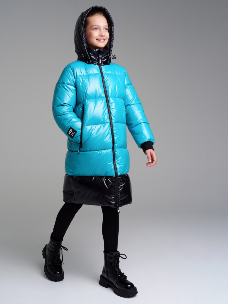 Пальто текстильное с полиуретановым покрытием для девочек черный,голубой