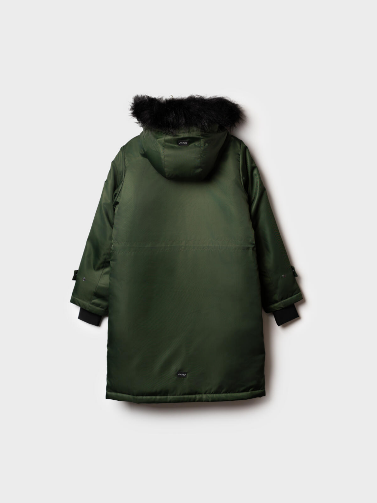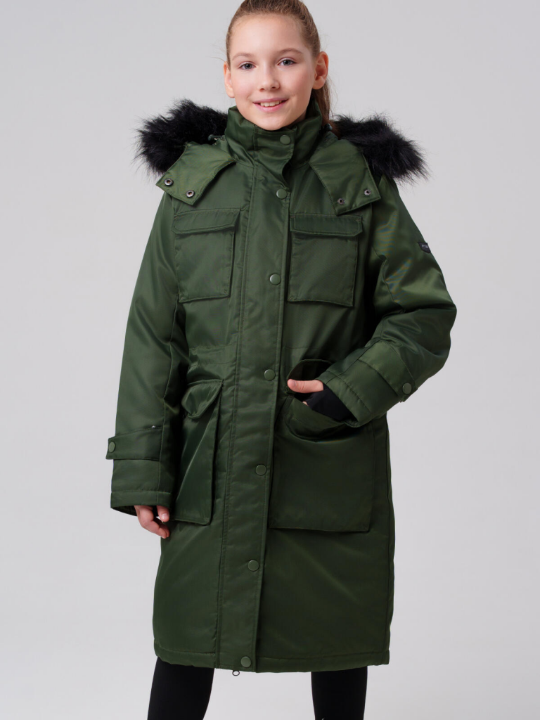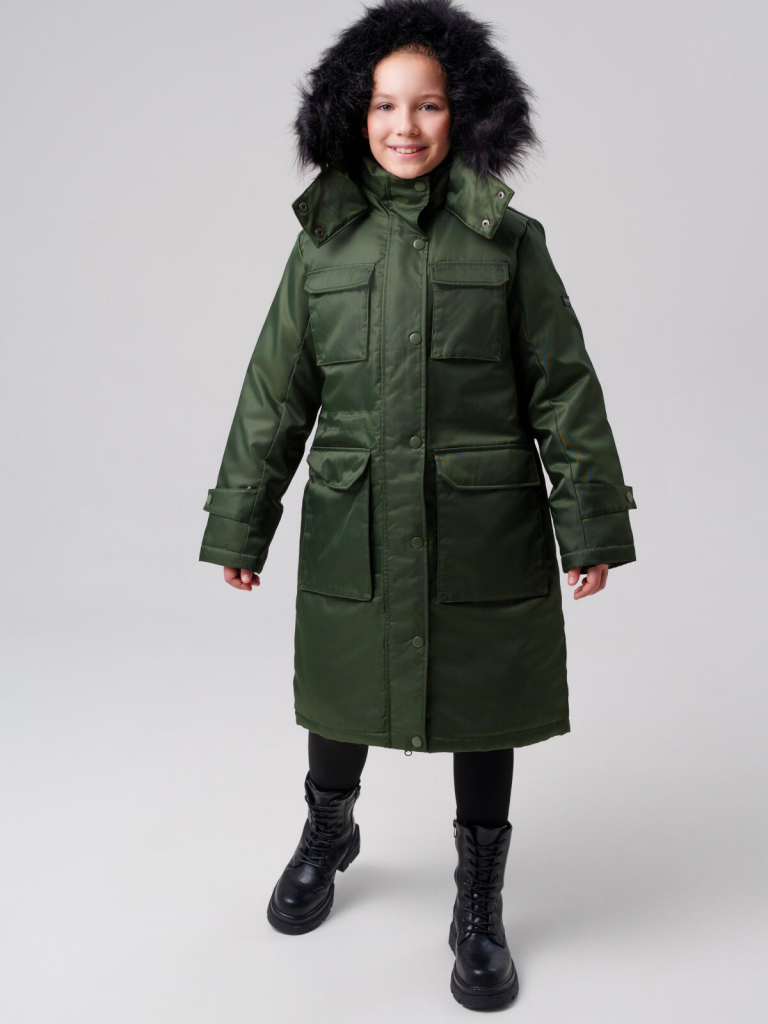 Пальто текстильное с полиуретановым покрытием для девочек темно-зеленый