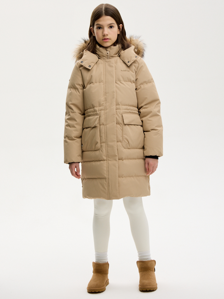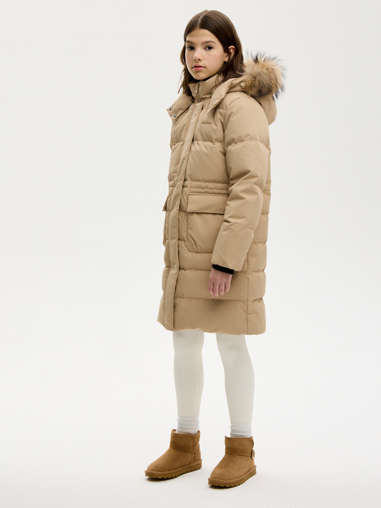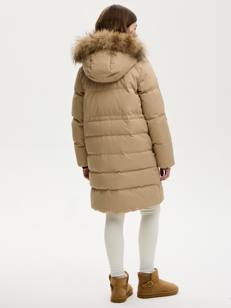 Пальто с наполнителем из премиального пуха (90% пух, 10% перо) согреет в самые сильные морозы. Натуральный пух - неизменный лидер среди утеплителей, сочетает в себе высокие теплоизоляционные характеристики, малый вес (изделия легкие) и долгий срок службы. Двойной пуховый пакет препятствует миграции пуха через ткань надежно удерживая наполнитель внутри.