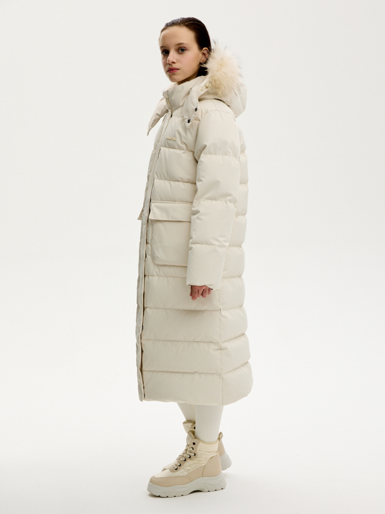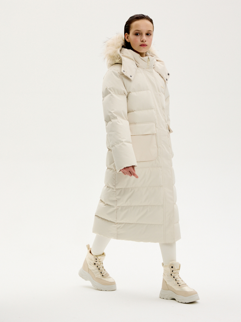 Пальто с наполнителем из премиального пуха (90% пух, 10% перо) согреет в самые сильные морозы. Натуральный пух - неизменный лидер среди утеплителей, сочетает в себе высокие теплоизоляционные характеристики, малый вес (изделия легкие) и долгий срок службы. Двойной пуховый пакет препятствует миграции пуха через ткань надежно удерживая наполнитель внутри.