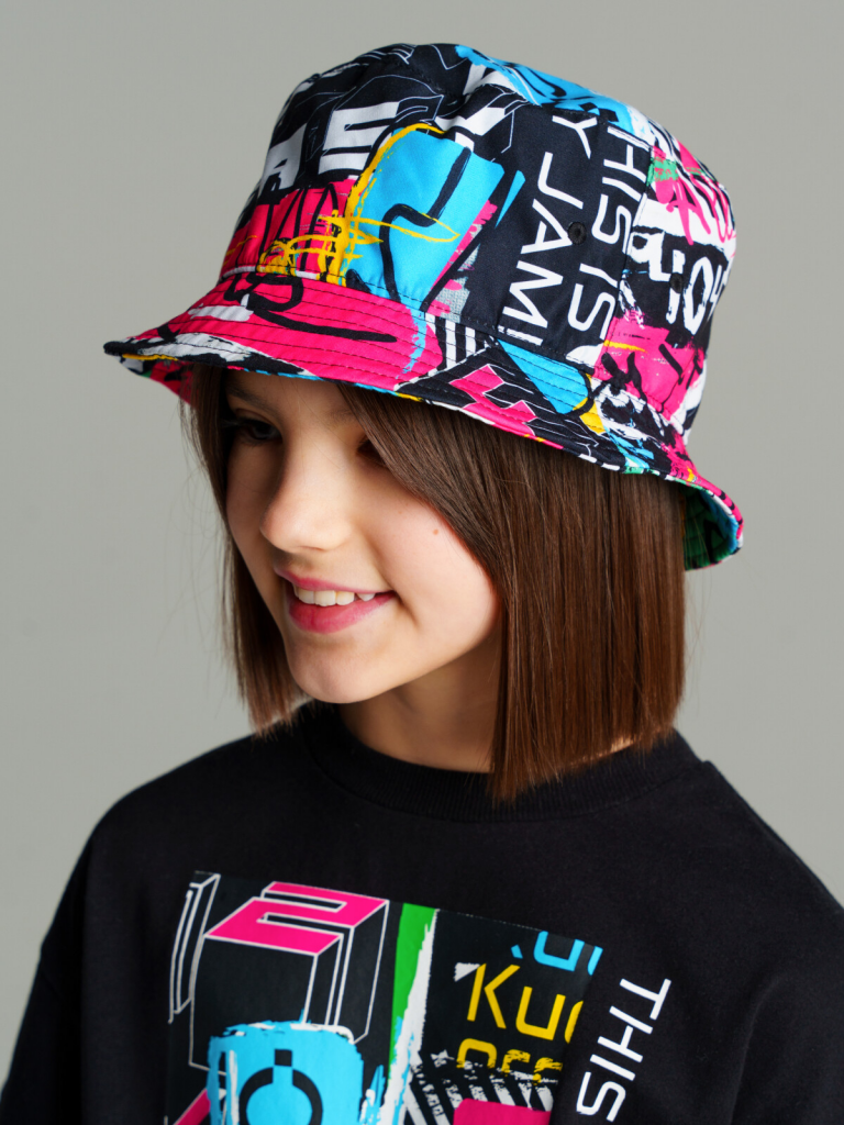 Панама текстильная для девочек черный,разноцветный