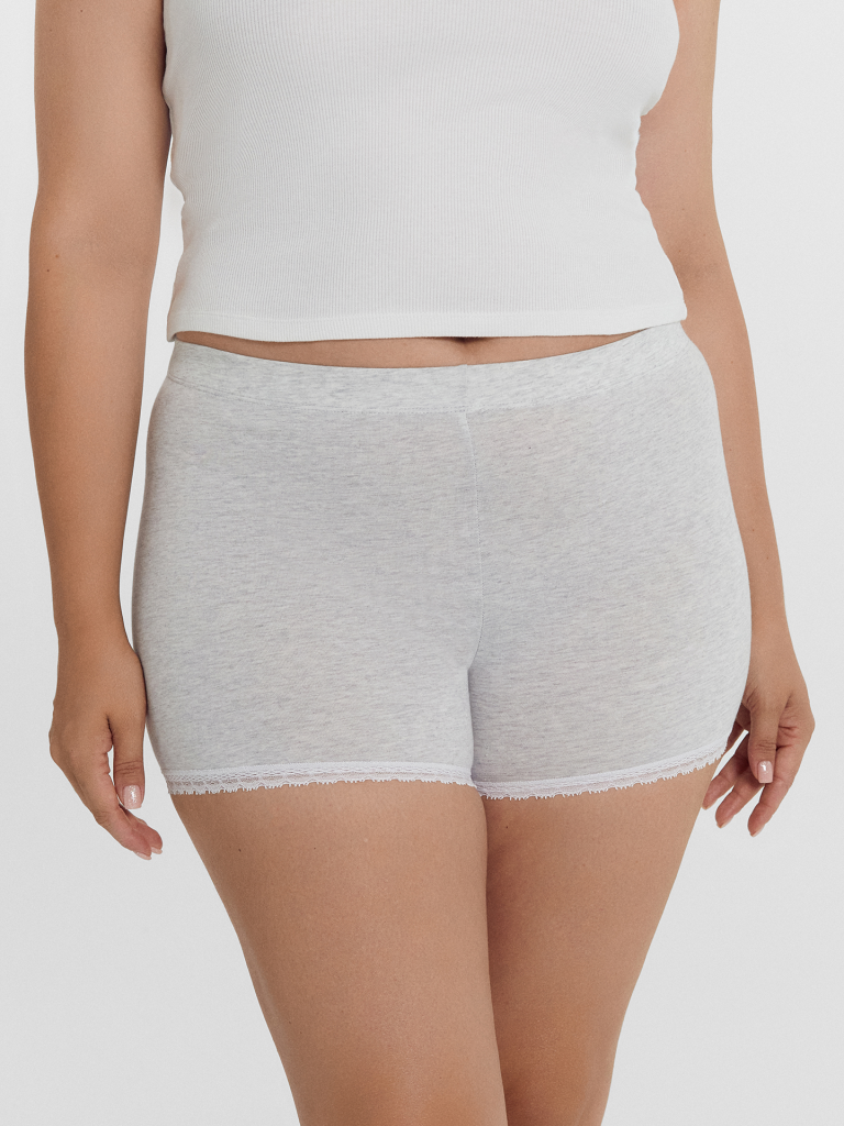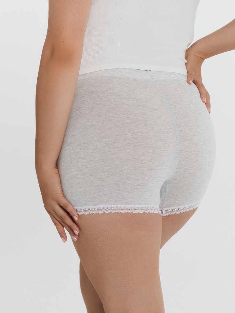 Укороченные женские панталоны из нежного и гипоаллергенного хлопкового полотна. Длина – как у шортиков мини, линия талии высокая. Гарантируют особый комфорт, сглаживают проблемные места, делают силуэт более элегантным. Нижние срезы декорированы ажурным кружевом. Созданы для дам с пышными формами!