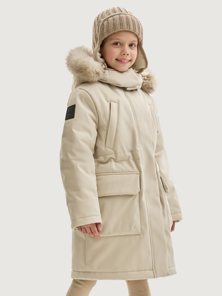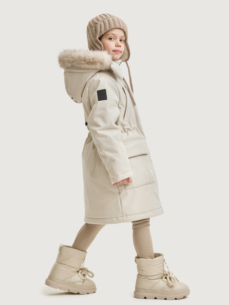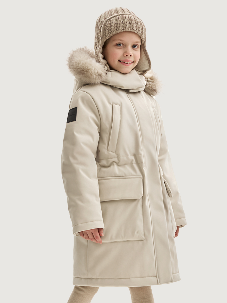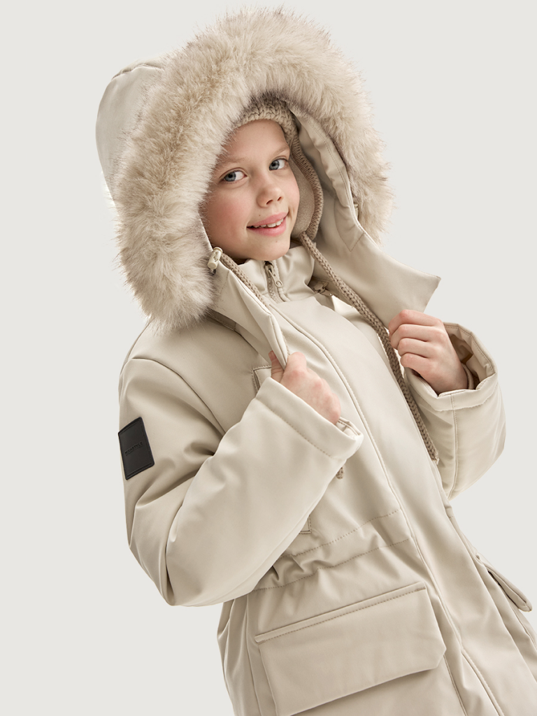 Парка из мембранной ткани 3000/3000. Мембранная ткань это непродуваемый и водонепроницаемый материал, который надежно защищает от ветра и влаги. Благодаря дышащим свойствам мембраны ребенку будет комфортно в любую погоду и он не вспотеет.