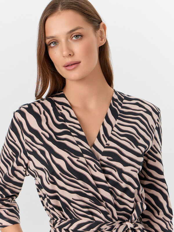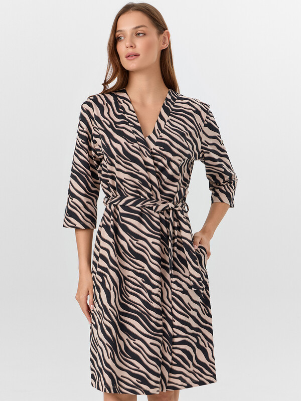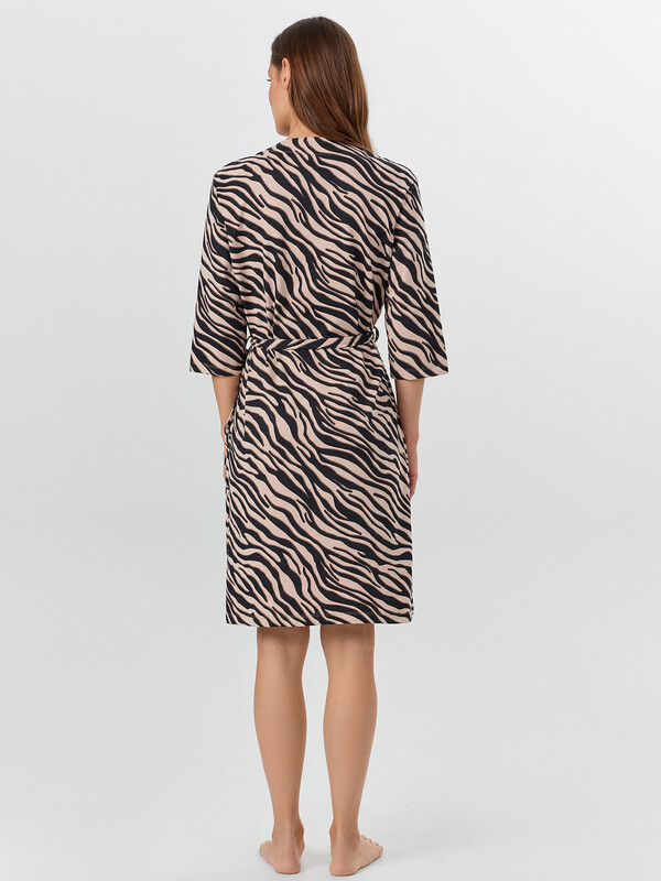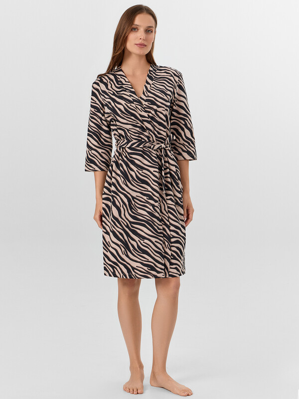 Натуральный хлопок дарит коже приятную прохладу в теплое время и мягкое тепло в прохладные вечера. Стильный анималистичный принт делает этот пеньюар ярким акцентом домашнего гардероба. Практичный и элегантный вариант для романтических вечеров или спокойного времяпрепровождения в уюте.