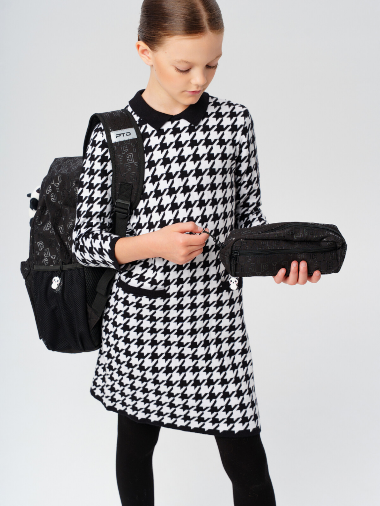 Стильный пенал из водоотталкивающего материала для девочки подростка. Размер 20*8*8 см. Пенал имеет три отделения на молнии. Внутри крайних отделений имеются различные карманы для систематизации канцелярских принадлежностей. Молния декорирована маленькими навесами пандами. Пенал компактный и легко помещается в школьный рюкзак. К пеналу можно подобрать меховой рюкзак и мешок для сменки в едином дизайне