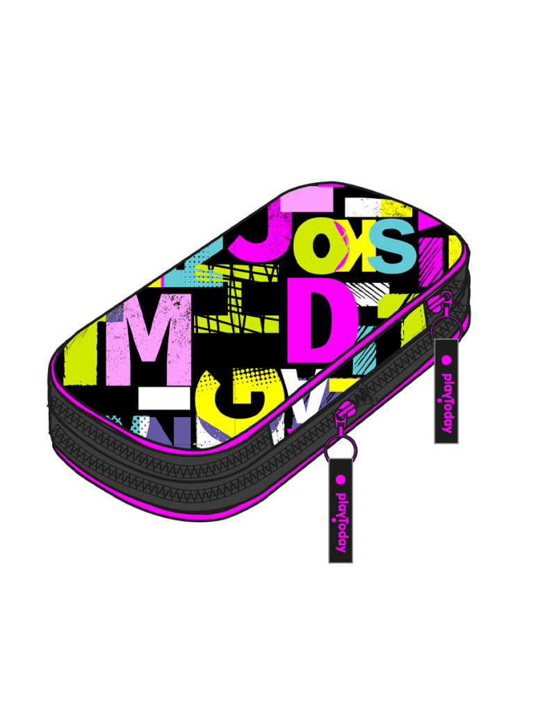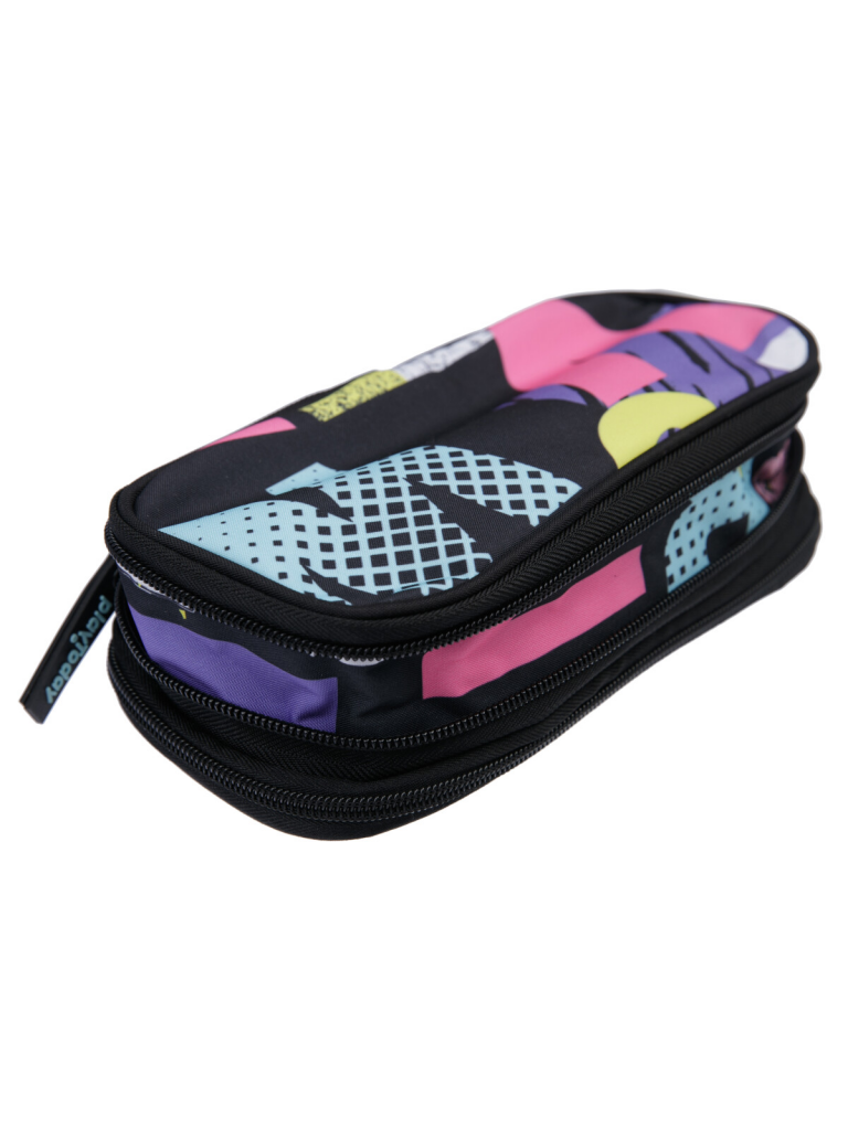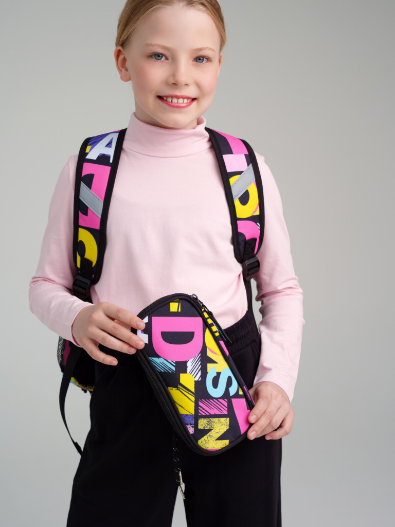 Пенал текстильный для девочек черный,разноцветный
