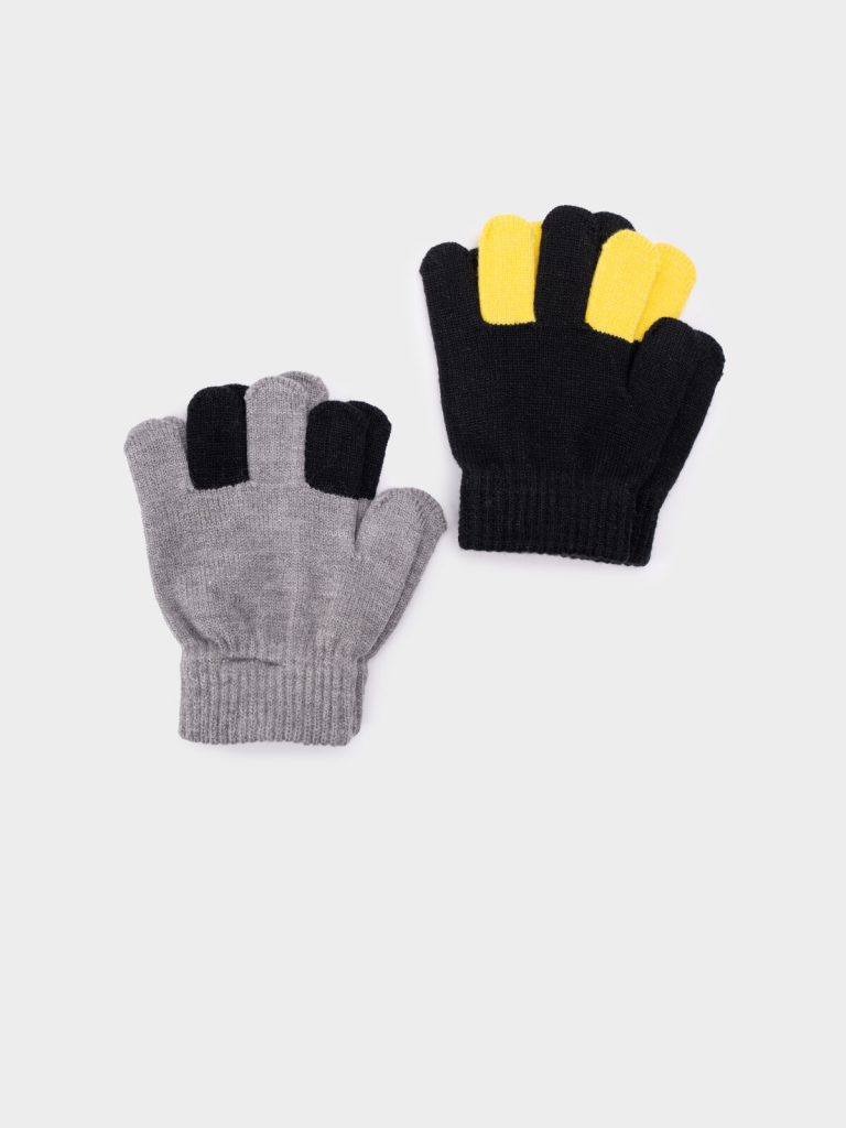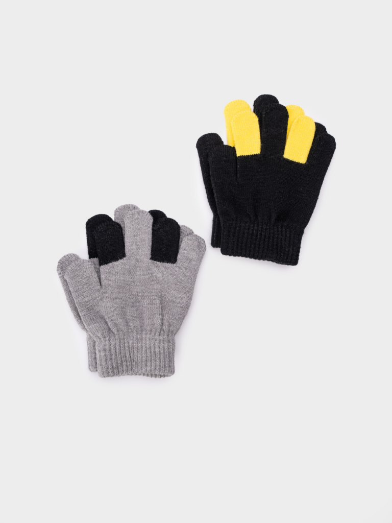 > Перчатки детские трикотажные для мальчиков, 2 пары в комплекте серый,черный,жёлтый