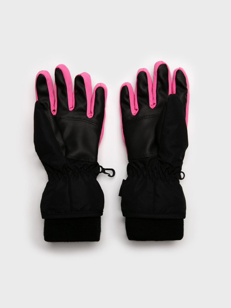 Перчатки для девочки подростка. Утепленные перчатки из мембранной ткани 5000*5000 - необходимый аксессуар для холодного времени года (осень, зима). Перчатки имеют флисовую подкладку и тесьму с карабинами, благодаря которой можно крепить перчатки друг к другу. Трикотажный манжет с защитой от снега. Специальный протектор на ладонной части усиливает износостойкость изделия и возможность регулировки ширины запястья.
