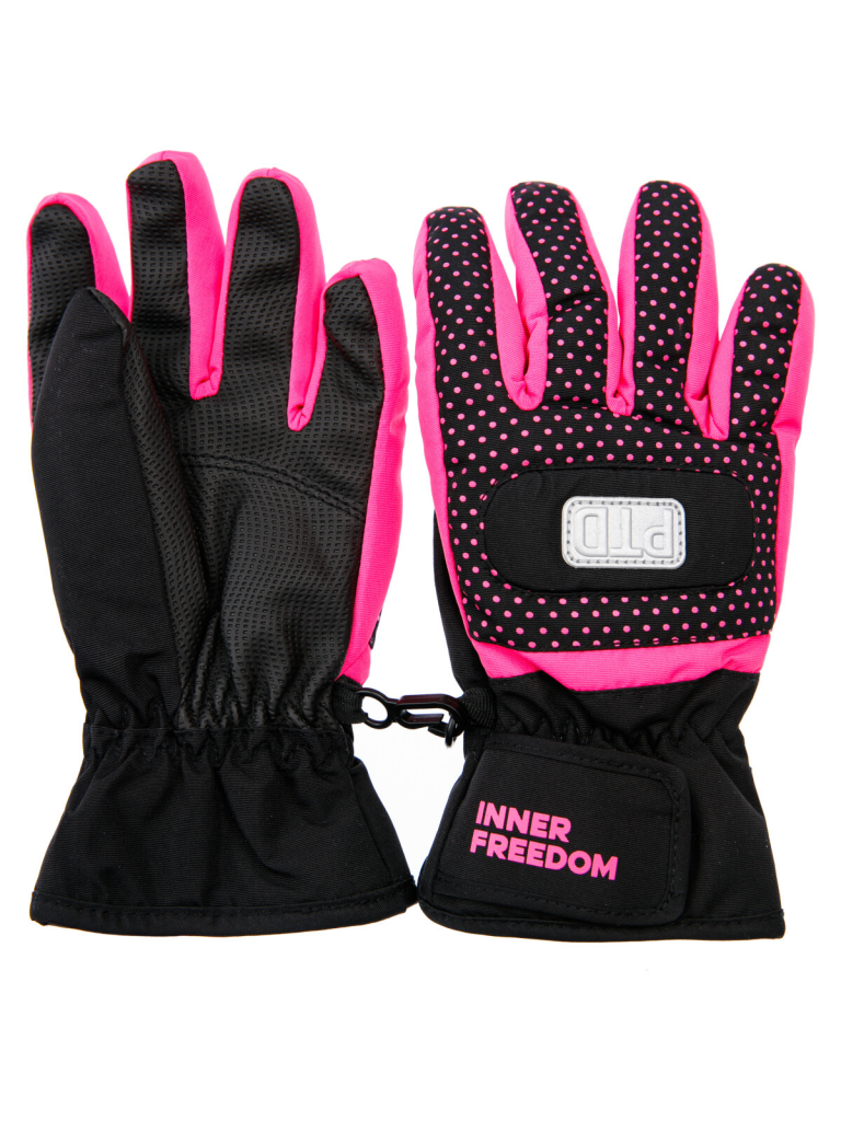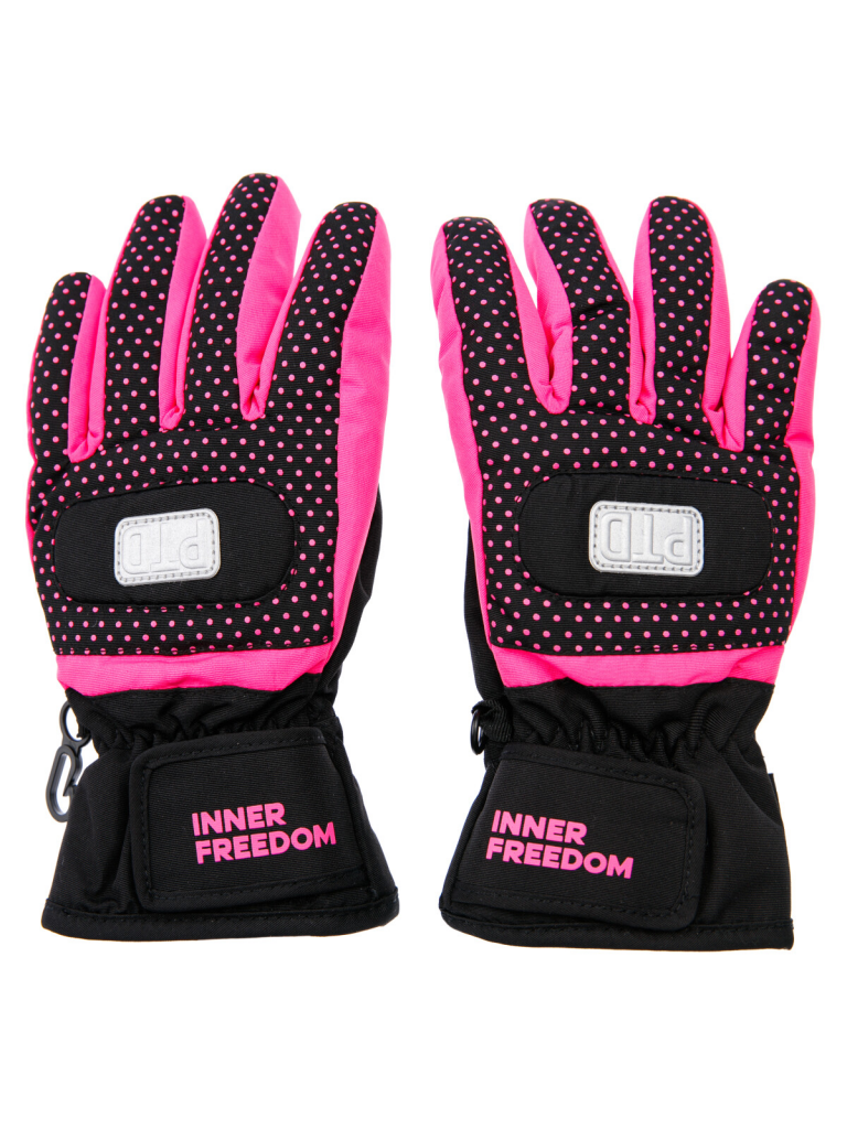Зимние перчатки с мембраной. Утеплитель - синтепон. Мягкая ладошка из влагостойкого полиуретана. Регулируемая застёжка с липучкой по запястью. Застежка для скрепления пары между собой. Светоотражающие элементы.