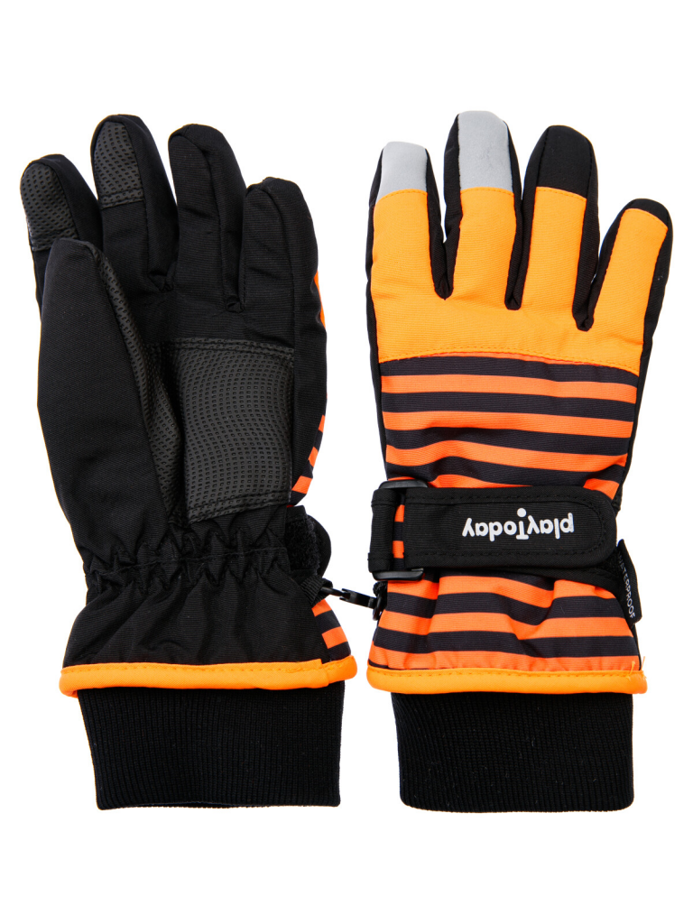 Зимние перчатки с мембраной. Утеплитель - синтепон. Мягкая ладошка из влагостойкого полиуретана. Регулируемая застёжка с липучкой по запястью. Застежка для скрепления пары между собой. Эластичный манжет. Светоотражающие элементы.