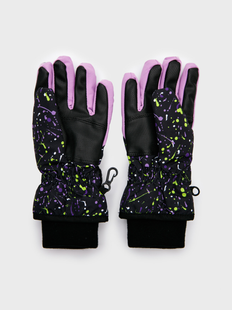 Перчатки для девочки подростка. Утепленные перчатки из мембранной ткани 5000*5000 - необходимый аксессуар для холодного времени года (осень, зима). Перчатки имеют флисовую подкладку и тесьму с карабинами, благодаря которой можно крепить перчатки друг к другу. Трикотажный манжет с защитой от снега. Специальный протектор на ладонной части усиливает износостойкость изделия и возможность регулировки ширины запястья.