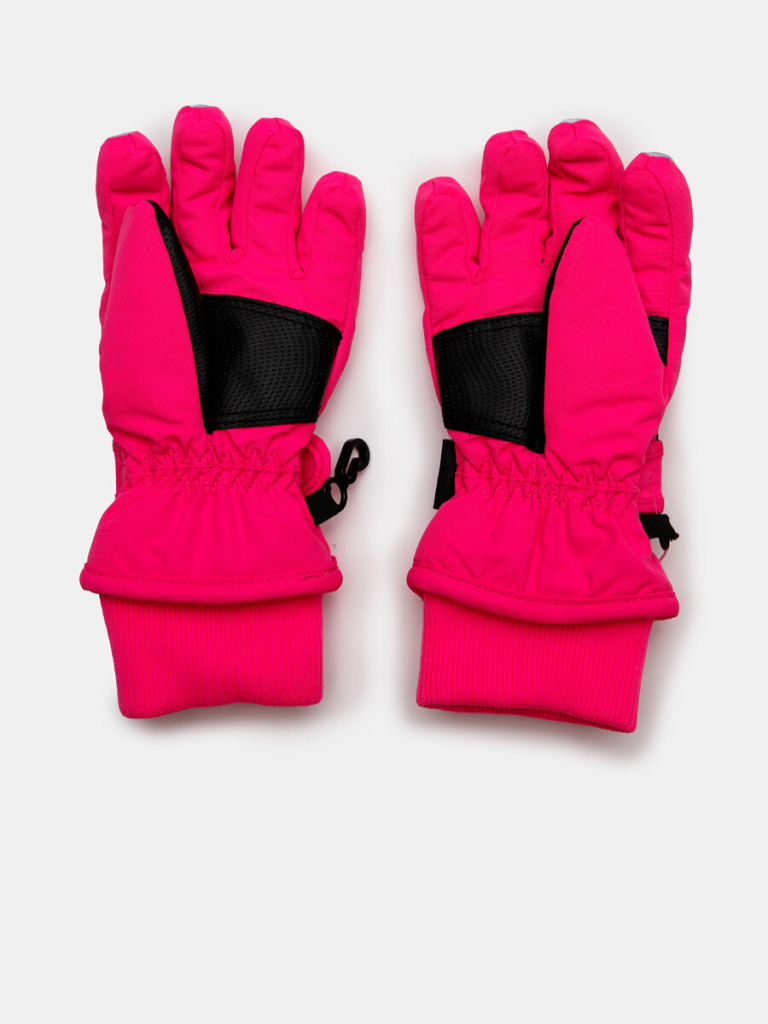 Перчатки детские для девочки. Утепленные перчатки из мембранной ткани 5000*5000 - необходимый аксессуар для холодного времени года (осень, зима). Перчатки имеют флисовую подкладку и тесьму с карабинами, благодаря которой можно крепить перчатки друг к другу. Трикотажный манжет с защитой от снега. Специальный протектор на ладонной части усиливает износостойкость изделия и возможность регулировки ширины запястья.